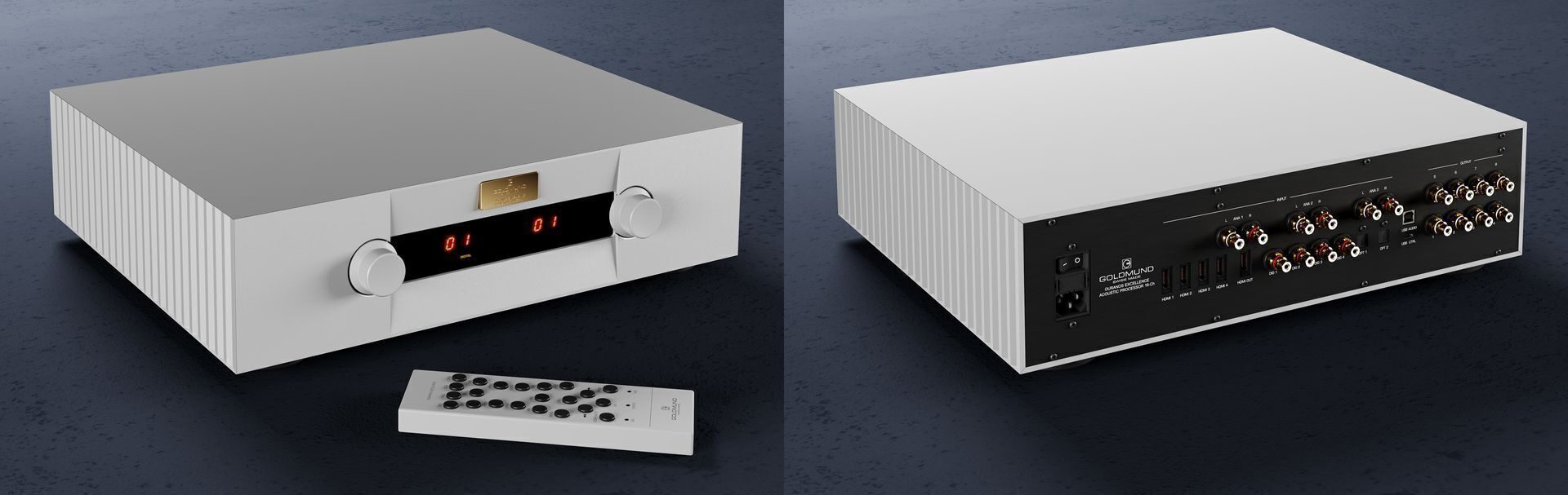 Швейцарская компания Goldmund представила многоканальный процессор Ouranos Excellence для систем домашнего кинотеатра. Это 16-канальная система с DSP-модулем нового поколения, работающим с частотой дискретизации 96 кГц и разрядностью 24 бита. Конструкция предусматривает использование оперативной памяти DDR увеличенного объема. Реализована технология коррекции акустики помещения и обновленный пользовательский интерфейс.
