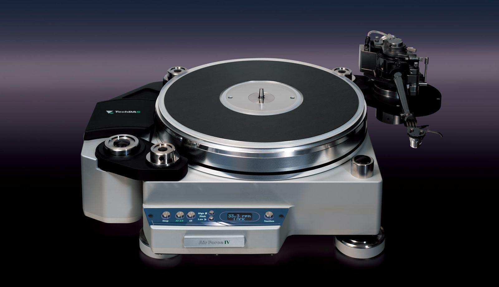 Проигрыватель TechDAS Air Force IV использует немало пневматики. В этой модели, которую компания позиционирует в качестве начальной, воздушный подшипник для изоляции опорного диска и пластинки от вибраций сочетается с вакуумной системой фиксации самой пластинки.