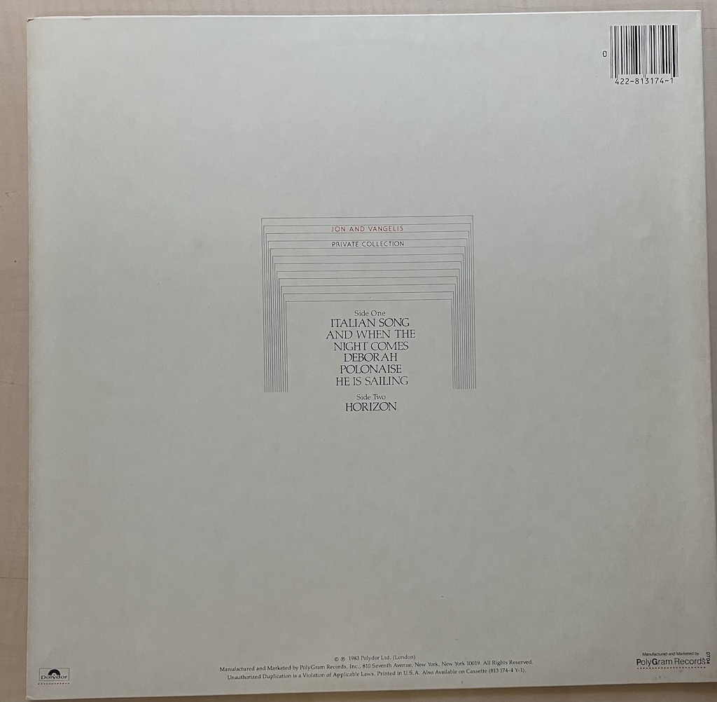 Jon & Vangelis - Private collection - в отличном состоянии один из моих самых любимых альбомов!