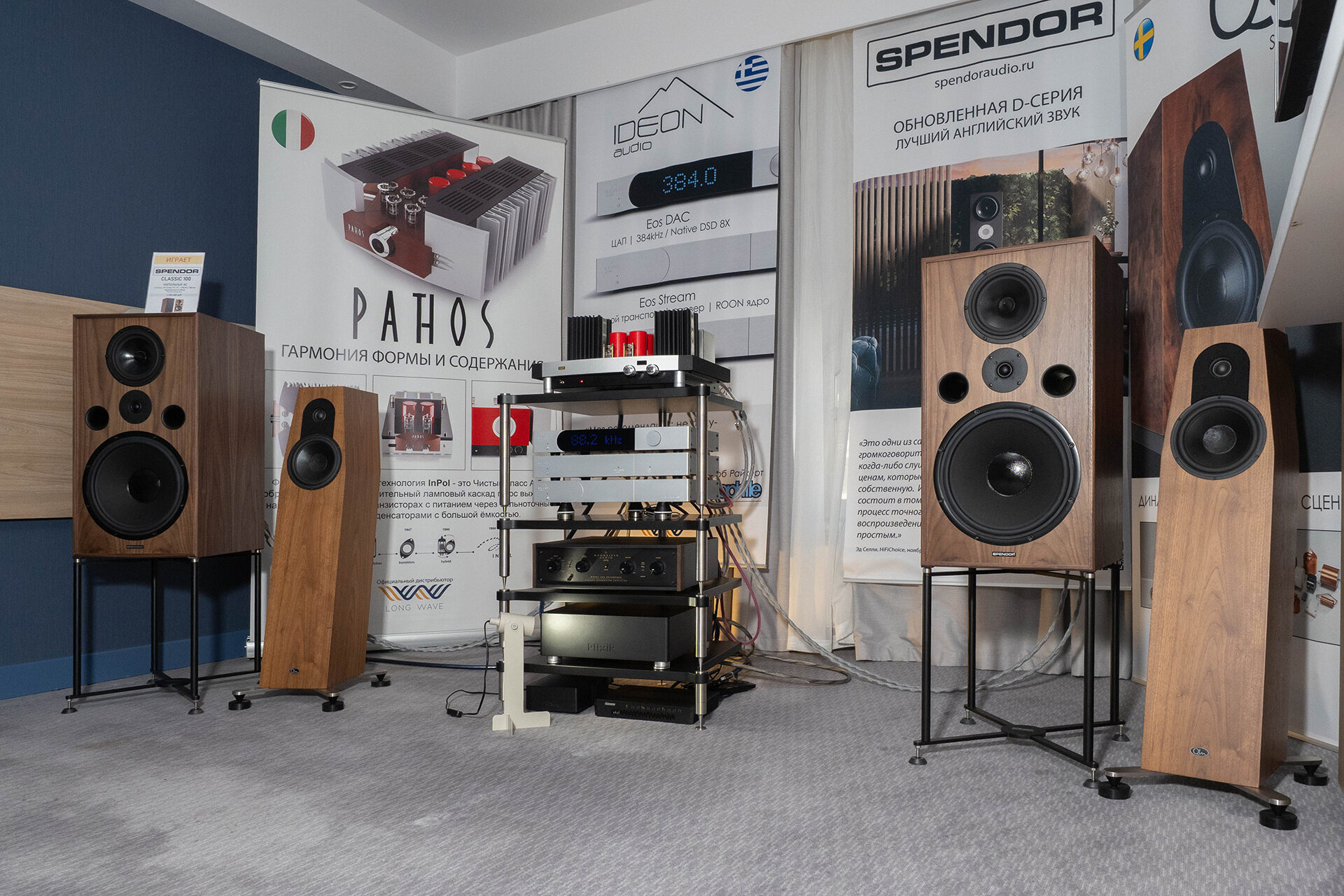 Практически антиподы по звуку — акустика Qln и две модели Spendor, в том числе крупные полочники-мониторы из классической линейки с гибридным усиление Pathos и тразисторным Moonriver, цифрой Ideon Audio. Получились очень разные по характеру системы с одним источником и чередующимися усилителями. И звук разный, сильно разный, но каждый по-своему интересный. Тут хотелось задержаться подольше, чтобы послушать именно в сравнении все элементы пазлов.
