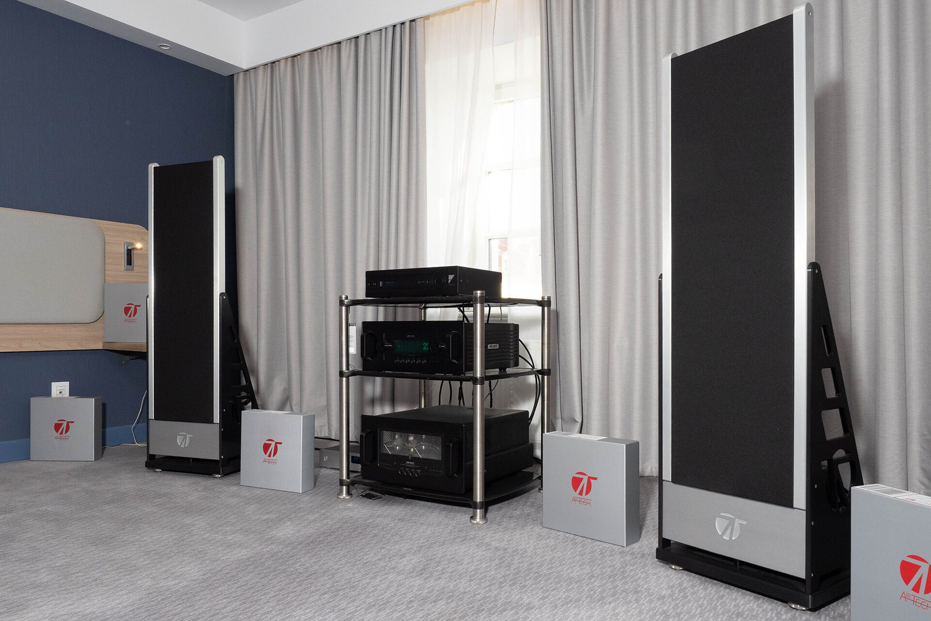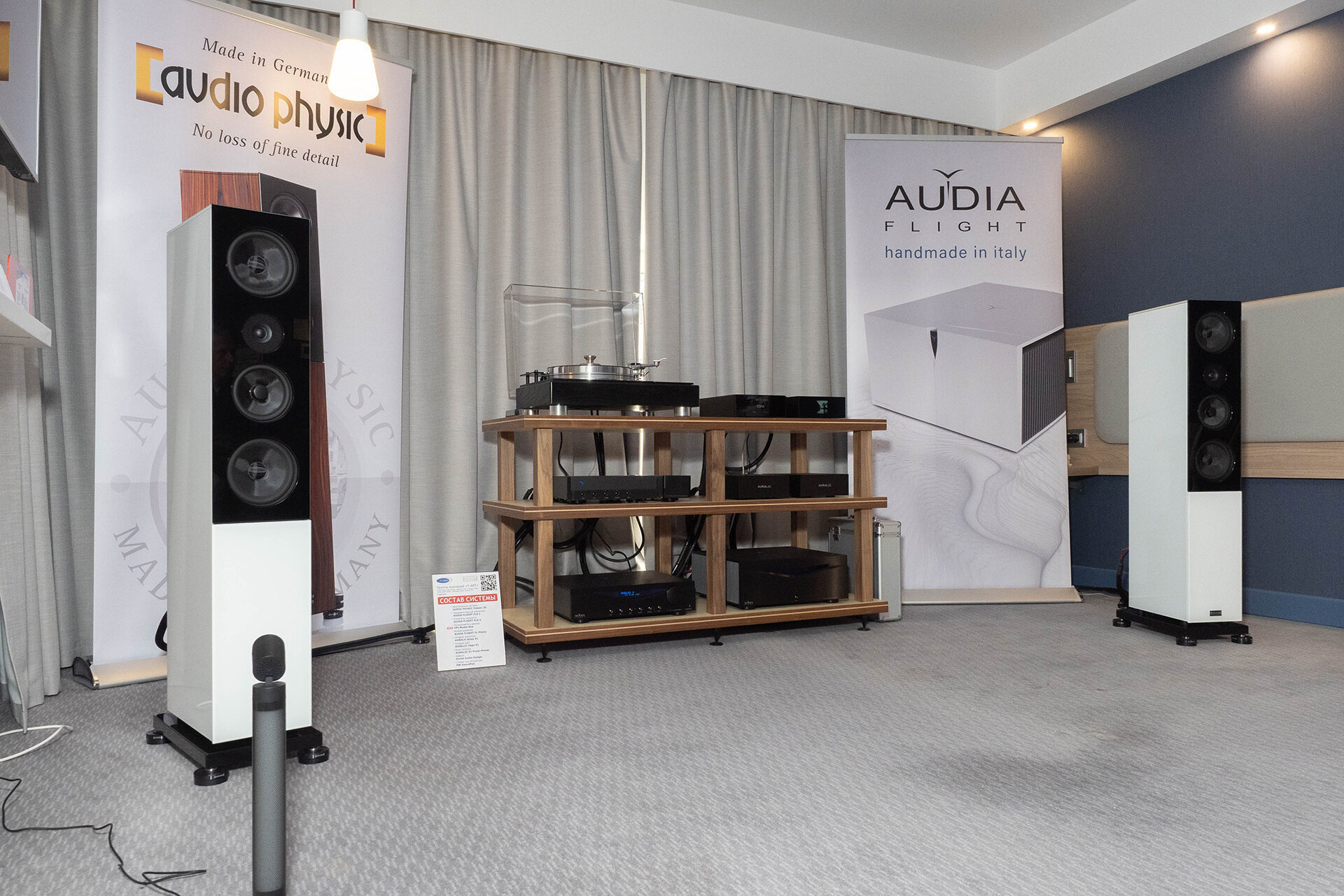 Тут собралась весьма необычная система, если посмотреть на набор компонентов. Цифровой источник — Ayre, ламповое усиление — Audio Research, магнитопланарная акустика и кабели — Airtech.