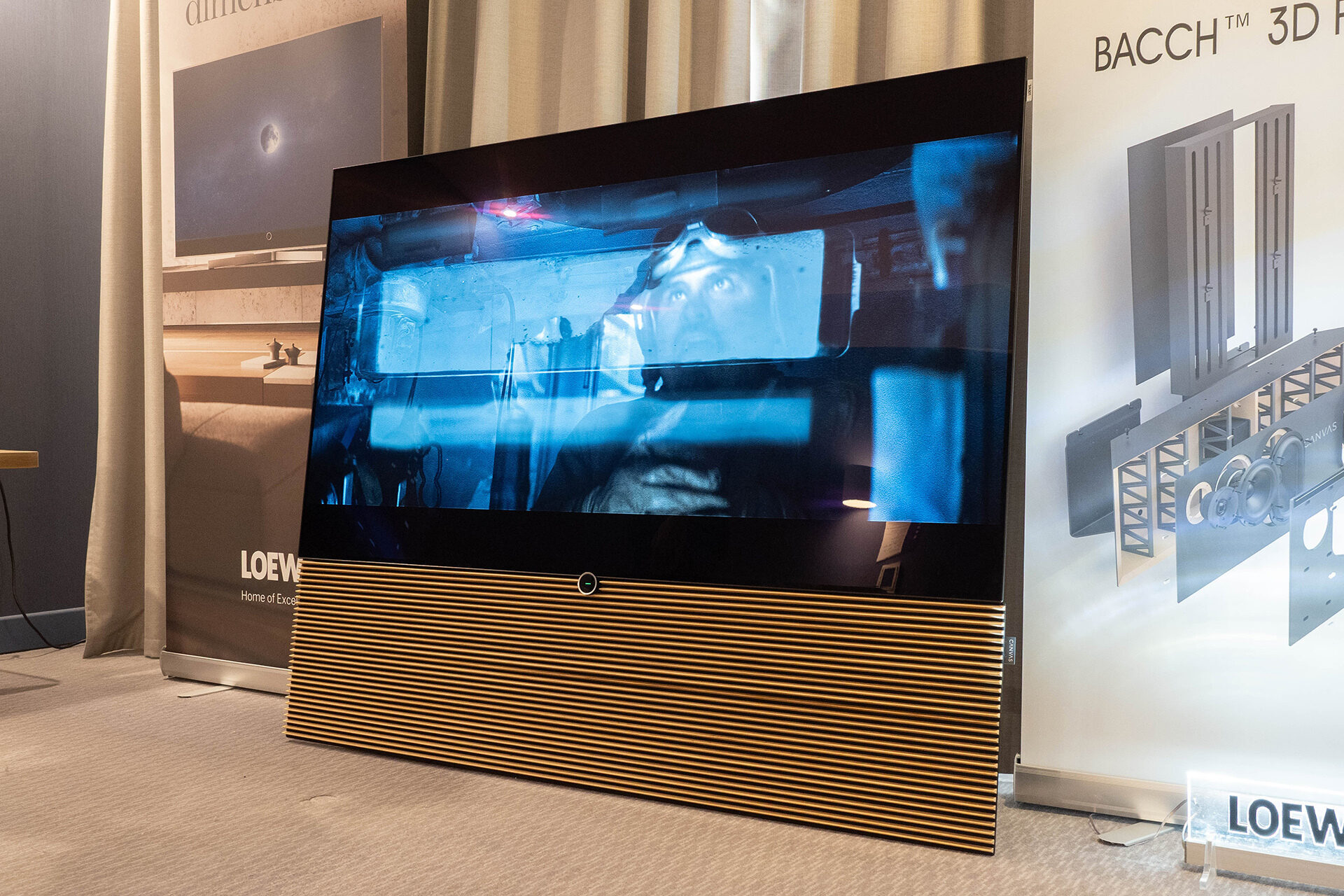 Телевизоры Loewe — с ними все понятно. Красивые, качественно собранные, с весьма приличной картинкой. И дизайн, и функционал более чем на уровне — впрочем, ожидаемо для этого производителя. Отдельно стоит взглянуть на необычные саундбары — или, скорее, звуковые панели Canvas. Крупная панель фактически со встроенной трехполосной стереопарой и собственным процессингом. Ставится все это по аналогии с саундбаром под телевизор, но звук получается скорее как от приличной пары колонок, которые могли бы стоять по бокам. И визуально все сделано так, что не уступает дизайну и исполнению Loewe.