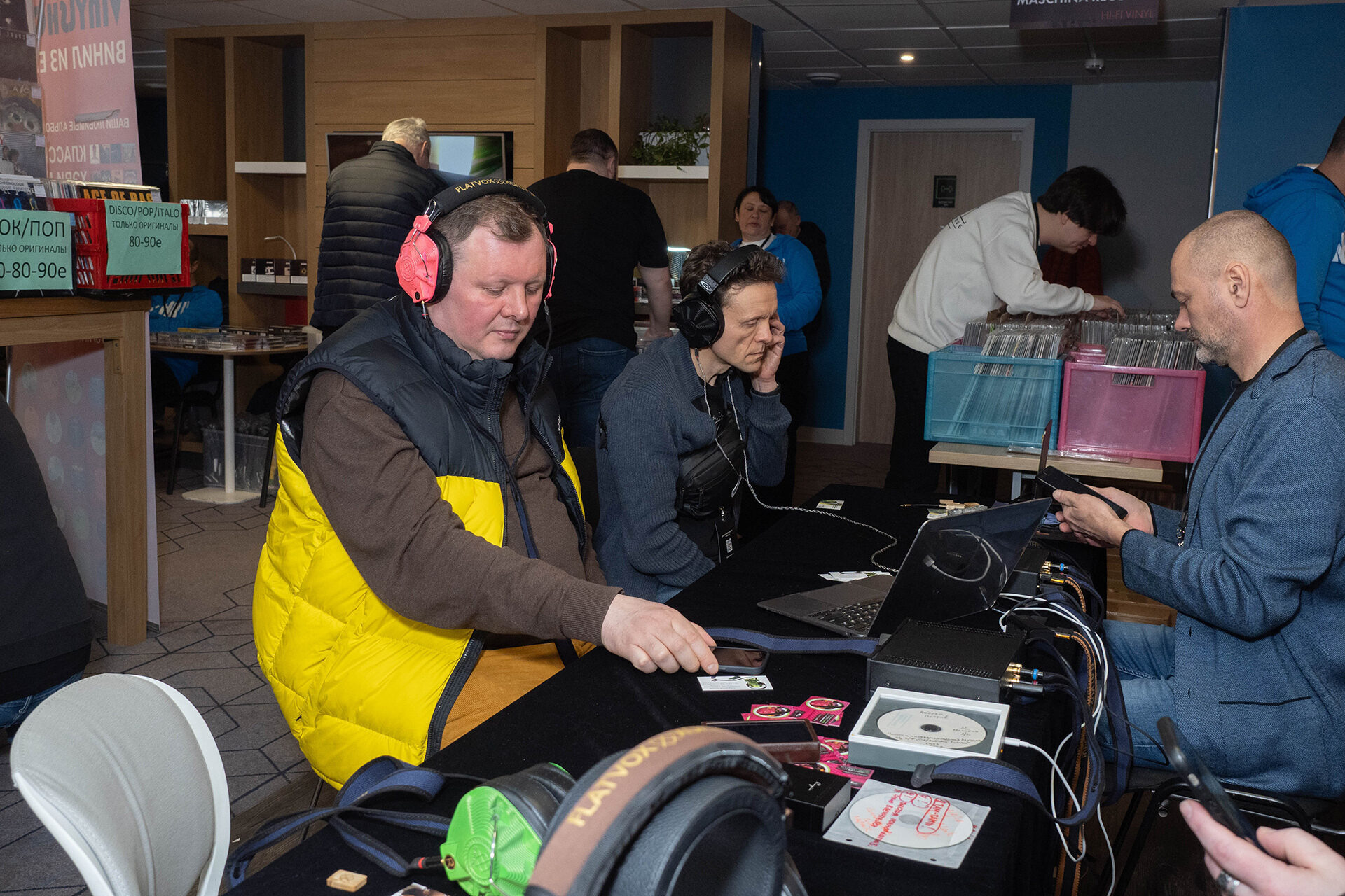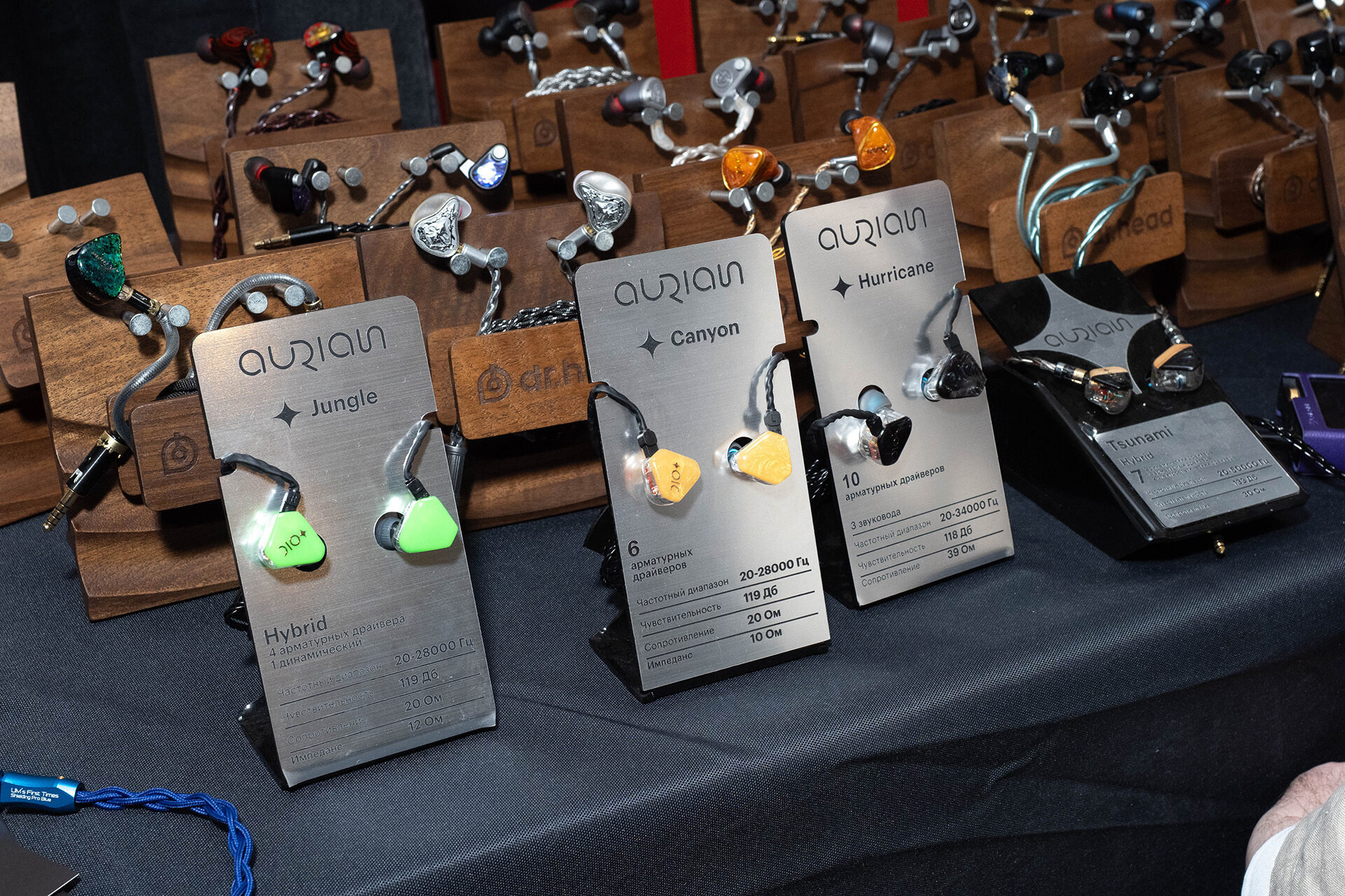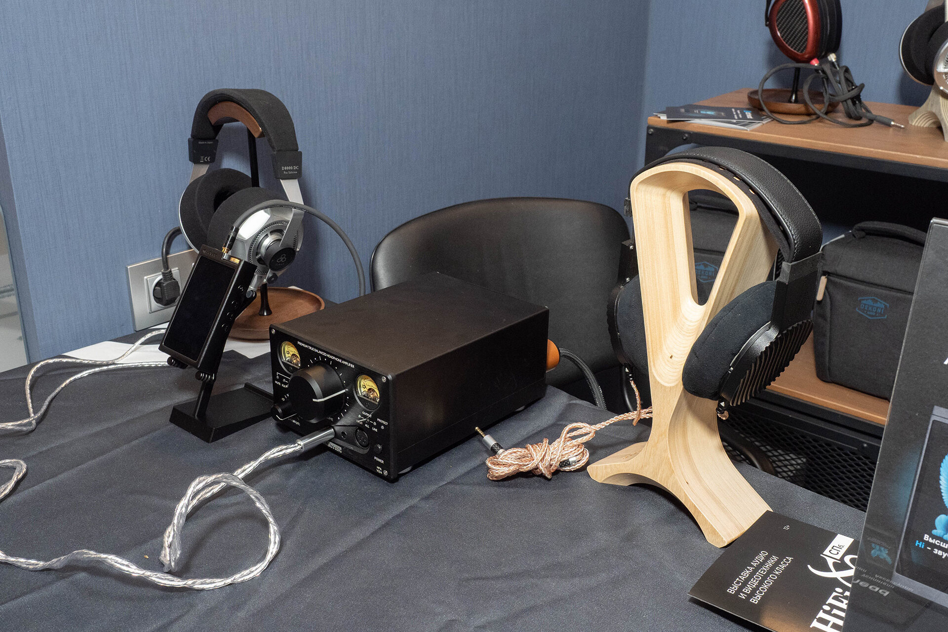 Ожидаемо много разных наушников разных производителей в сочетании с разными источниками и усилением. Если стоит задача подобрать себе наушники — можно слушать буквально каждую связку и в каждой найти что-то интересное.