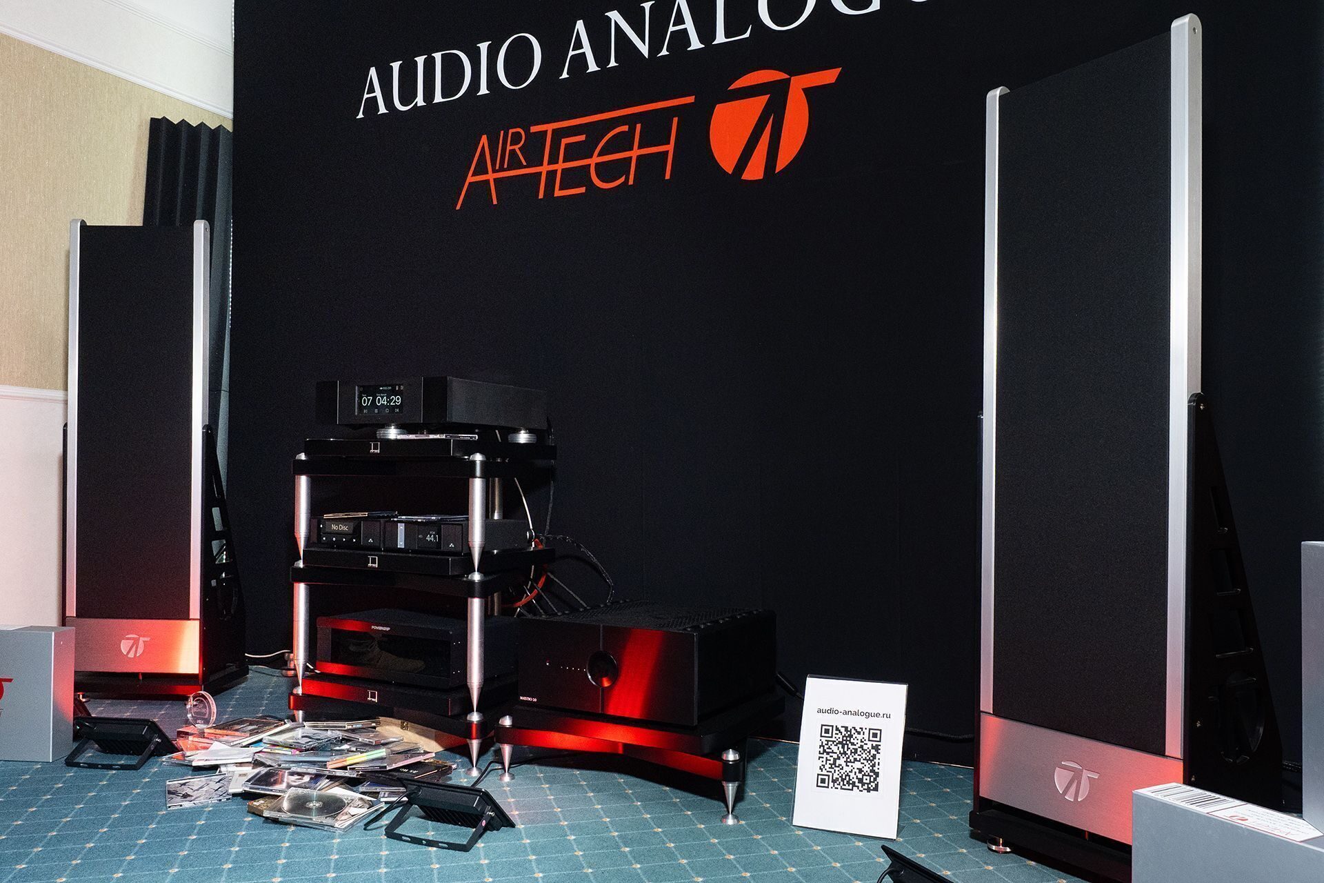 В комнате 1003 показывали странное: магнитопланары Airtech. Электроника — Metronome и Audio Analogue. Мягко и атмосферно, хорошо заполняет пространство, но звук необычный, с непривычной подачей диапазона, особенно середины. У слушателей наверняка мнения разделятся почти полярно — или за, или против, что-то среднее маловероятно. Слишком уж много характера в этом звуке — интересного и своеобразного.