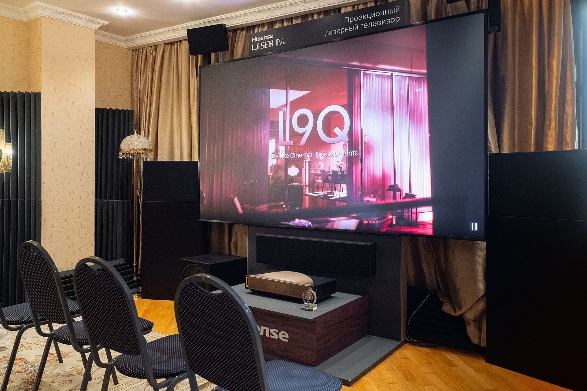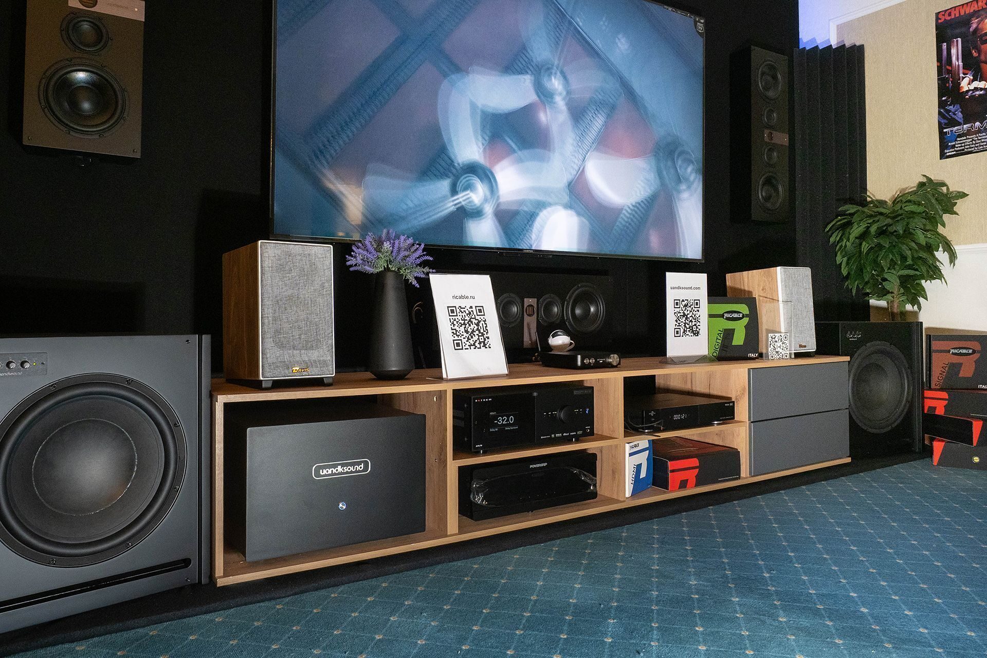 В соседней комнате 1002 те же дистрибьюторы, TL-Sound, построили, пожалуй, один из самых мощных домашних кинотеатров на выставке. Основой для него стала акустика UandKSound, причем сабвуферов поставили аж два. Слышно их было, кажется, через два этажа. За картинку в системе отвечал большой телевизор Hisense (настоящий телевизор, а не проектор с ALR-экраном), и погрузиться в атмосферу крутых боевиков 90-х можно было очень легко.