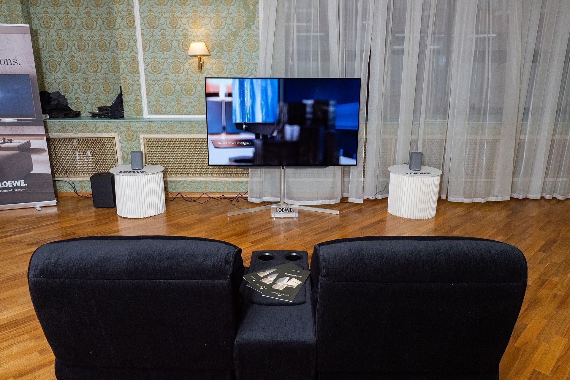 Панели Loewe разных форматов, на кронштейнах и стойках, стильные и очень стильные, демонстрируют всяческие изображения высокого разрешения под акустический аккомпанемент акустики объемного звука собственного же производства. Задуматься на минутку — ну да, крайне высокоранговые ощущения. Но если вы из тех, кому требуются еще какие-то веские доказательства, то диктор ставит эстетическую точку, которая предсказуемо играет отведенную ей роль: made in Germany.
