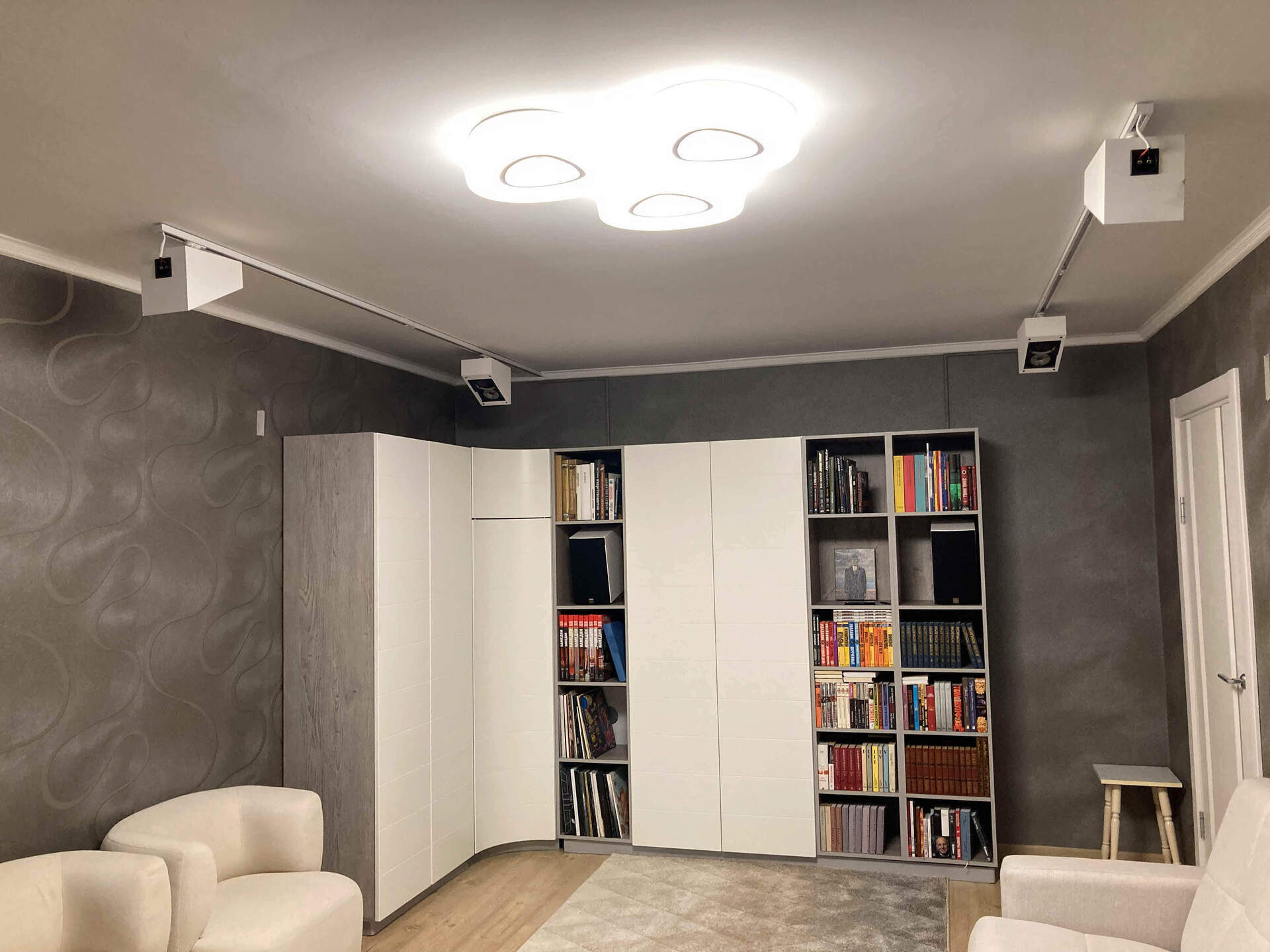 Друзья, спасибо за ваши советы вот в этой теме - https://stereo.ru/p/5g8ce-mneniya-po-povodu-audissey, Atmos наконец-то смонтировал. По итогу да, есть претензии по низкому расположению центра и высоковатому тылов, попробовал это нивилировать наклоном на место прослушивания. В остальном расположение всех колонок получилось в рекомендациях Dolby. Прилагаю фото итогового расположения.