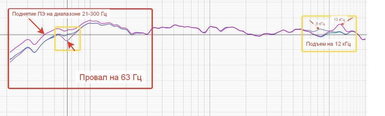 7) После свиптона и шума, получаем график и предложенный вариант коррекции. Соглашаемся и после проверочного свиптона, нам выдают фактический график, получившийся в результате (фото)