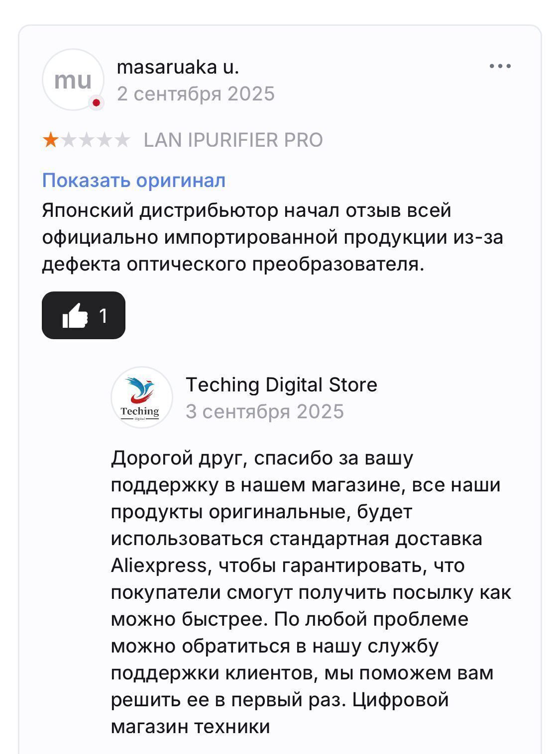 Доброго времени суток. Перестал работать оптический изолятор silent power lan ipurifefer pro, купленный на AliExpress, горит только одна лампочка питания. Возможно ли его в России отремонтировать или снова пробовать купить новое?