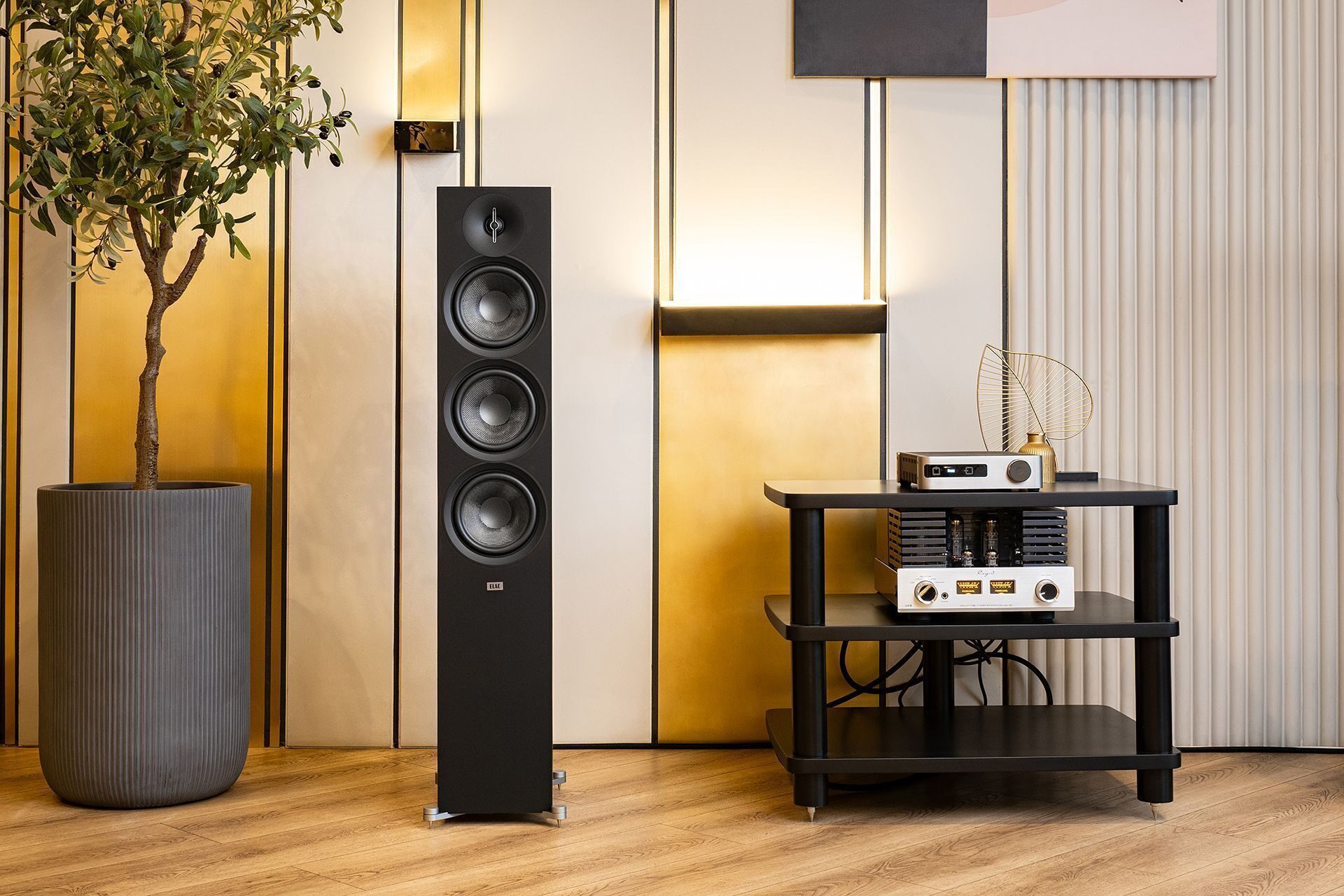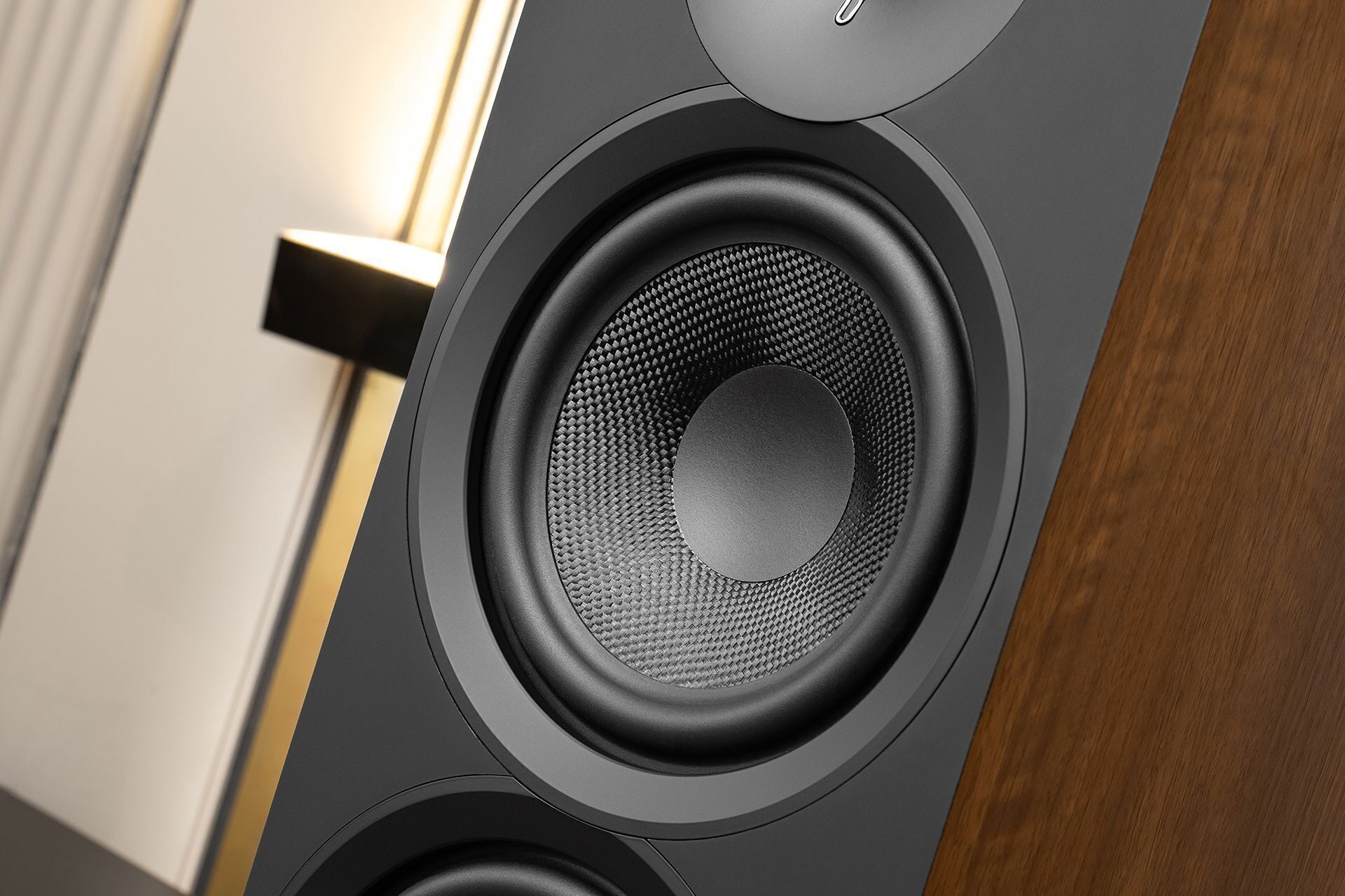 ELAC Debut F6.3 — это трехполосная напольная акустика со среднечастотником и двумя басовиками одинакового калибра. Их диффузоры выполнены из арамидного волокна — материала, сочетающего высокую жесткость и малый вес, что позволяет добиться одинаково точного и быстрого отклика в широком диапазоне громкостей.