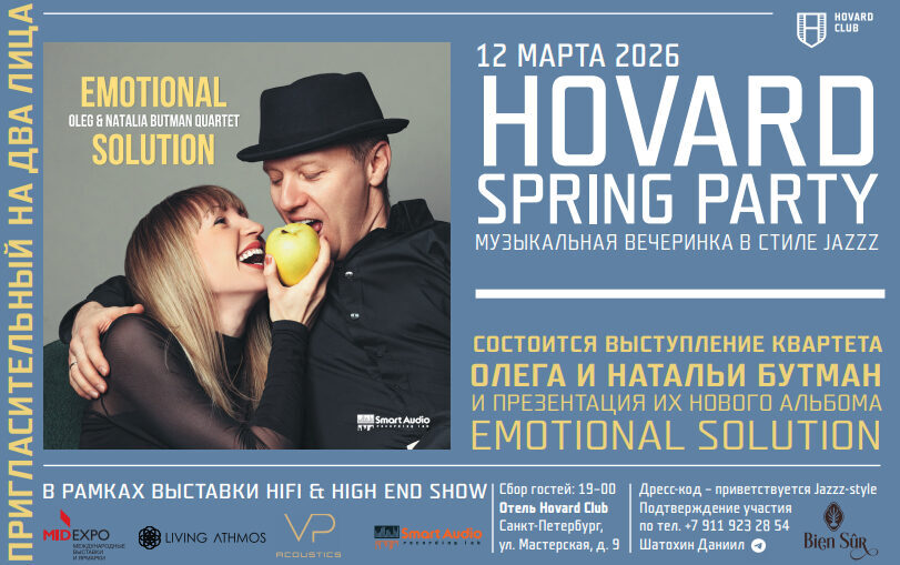 В очередной раз в Hovard Club в рамках Hifi &HiEnd Show в Санкт-Петербурге состоялось знаменательное событие. Михаил Мамонов и команда Smart Audio провели очередную "Вечеринку в стиле Джаз". На этот раз поводом стала новая аналоговая запись альбома квартета Олега и Натальи Бутман и живое выступление музыкантов.