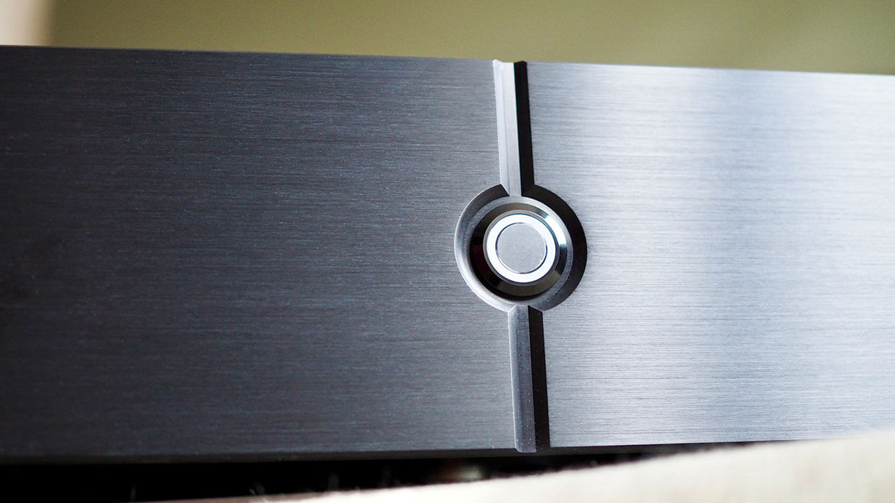 Вся эта техническая мощь заключена в солидный корпус массой 15,5 кг, оснащённый добротными, удобно расположенными акустическими клеммами. Фронтальная панель выполнена из чёрного анодированного алюминия толщиной 14 мм. Фирменный почерк Audio Analogue угадывается сразу: единственный декоративный элемент — вертикальная центральная бороздка, окружающая круглую кнопку Standby с белой светодиодной подсветкой.