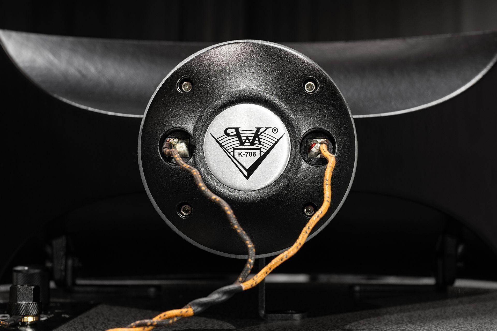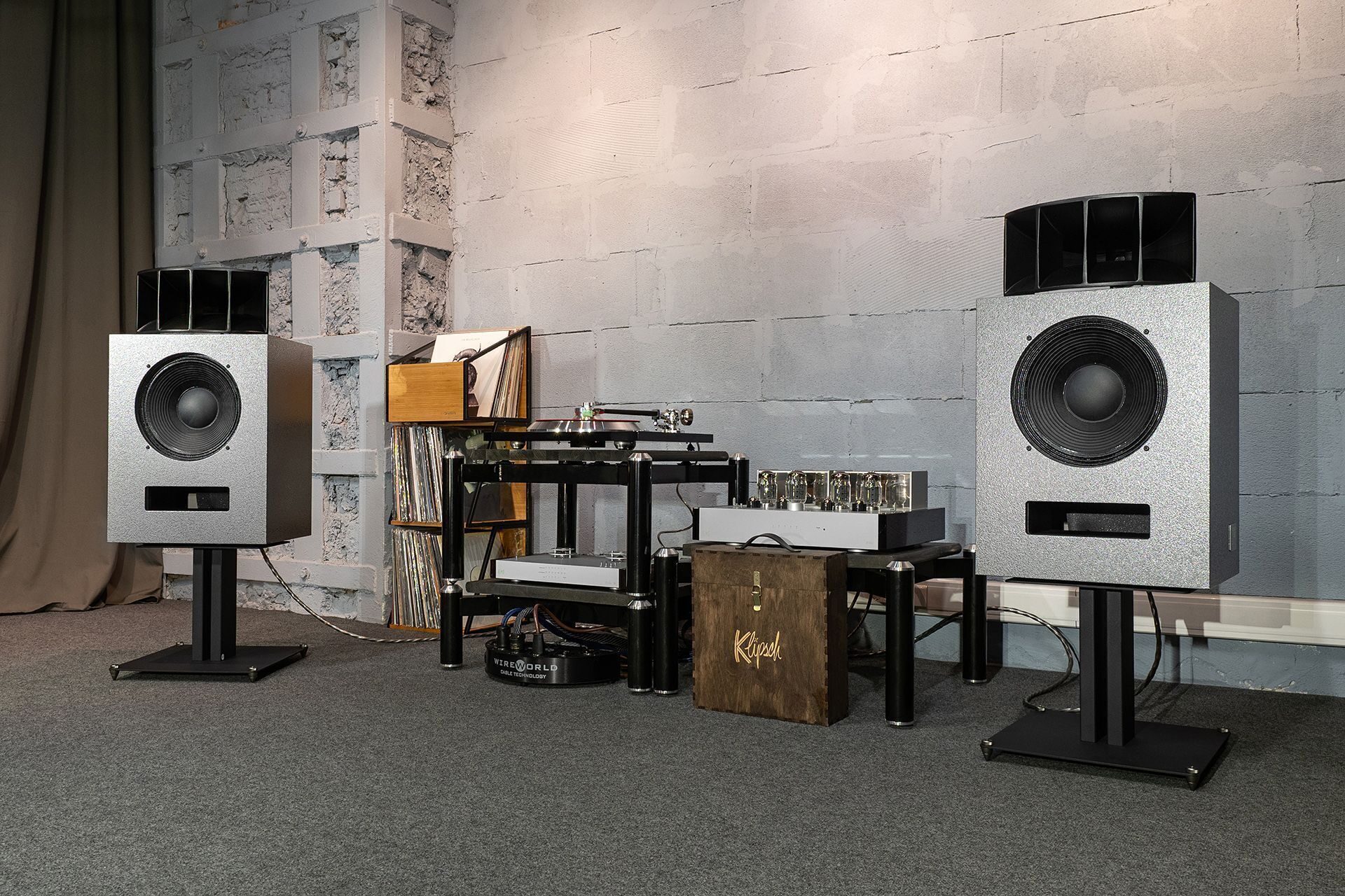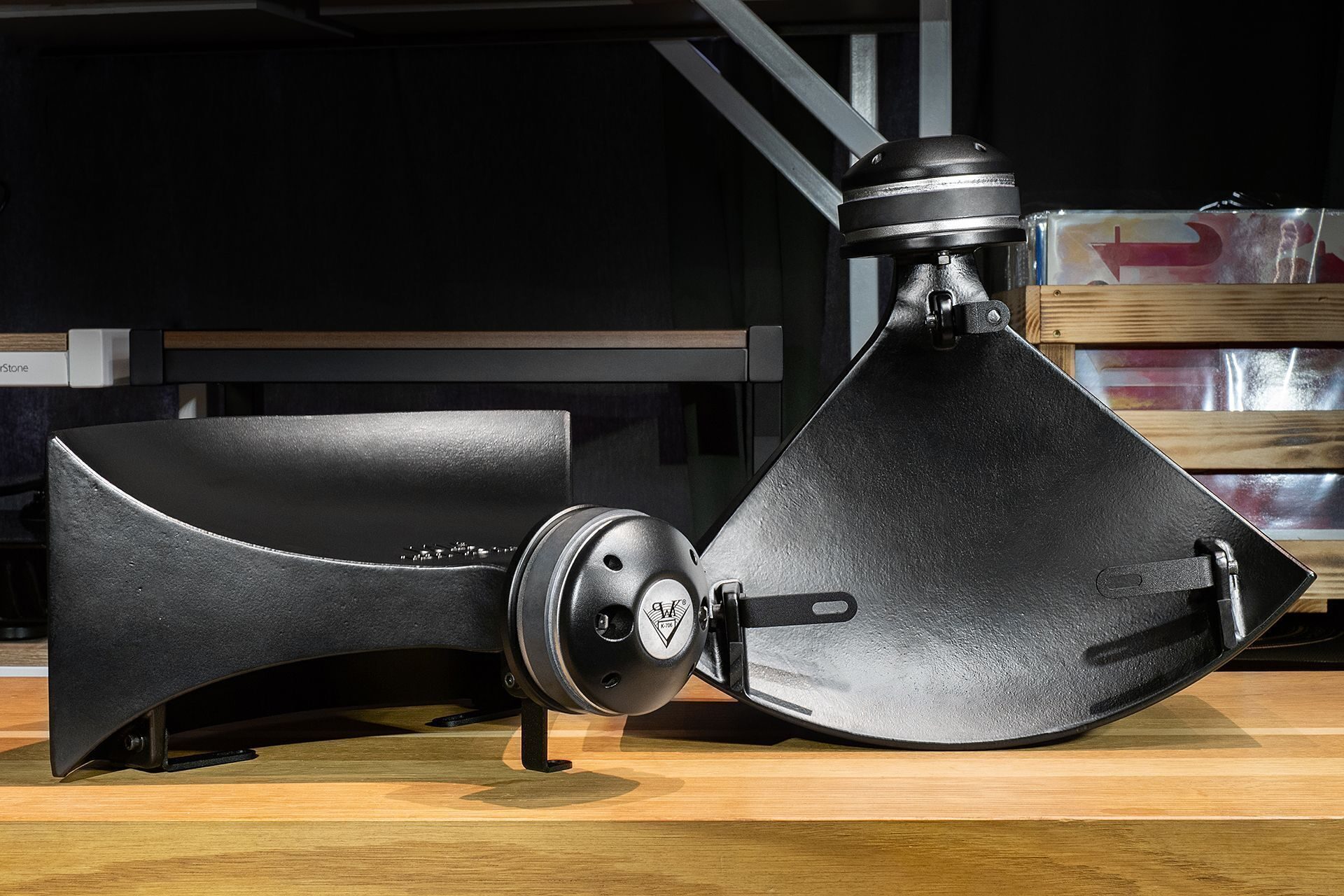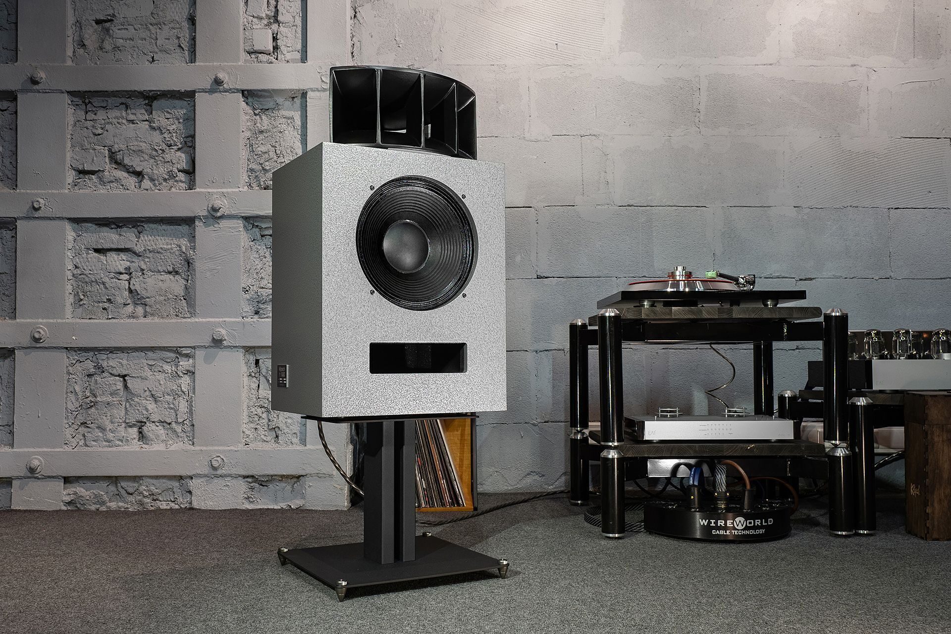 В рупор ставят компрессионный драйвер. Вместо того, чтобы наклонять корпус с помощью крохотной подставочки, как это сделано в Heresy, его ставят на невысокую ножку. Вуаля, вы прекрасны.