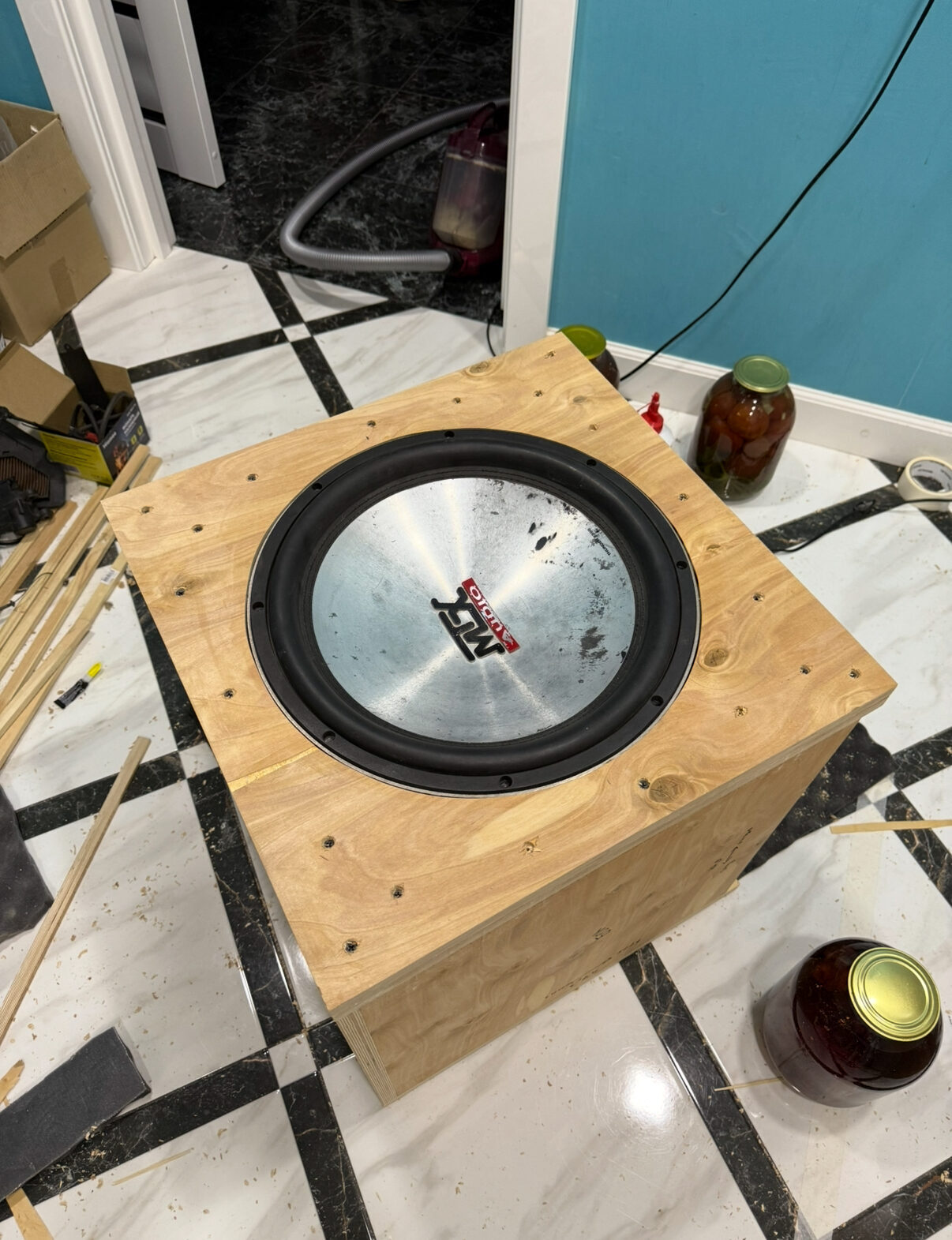 Сейчас пилю огромный сабвуфер, 15 дюймов, 95 литров чистого. Посмотрим что из этого выйдет, сравню со своими заводскими сабами.