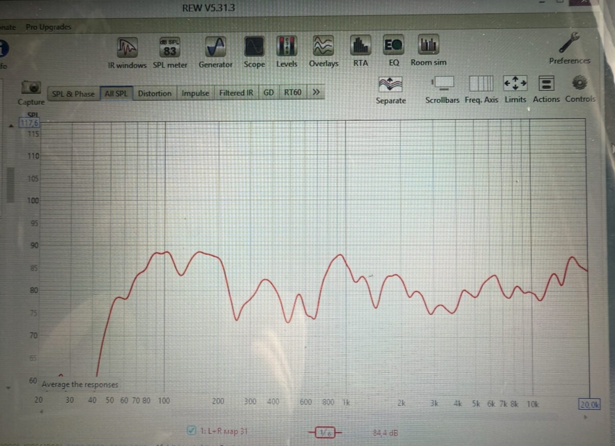 Сделал замер с точки прослушивания, колонки опускаются ниже 100Гц, при том что объем всё таки номинальный+закрытый ящик. Разброс не считаю критическим, параметриком причешу АЧХ горбы чуть убрав.