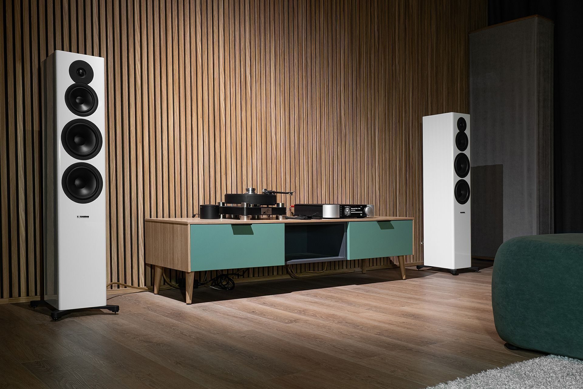 Тестовая система в этот раз блеснула разнообразием. Дополнительным источником аналогового сигнала выступил обольстительный Transrotor Massimo Nero. Акустики сразу две пары: напольники Dynaudio Evoke 50 и полочники Dynaudio Special Forty. Ну а звук — он был единственный.