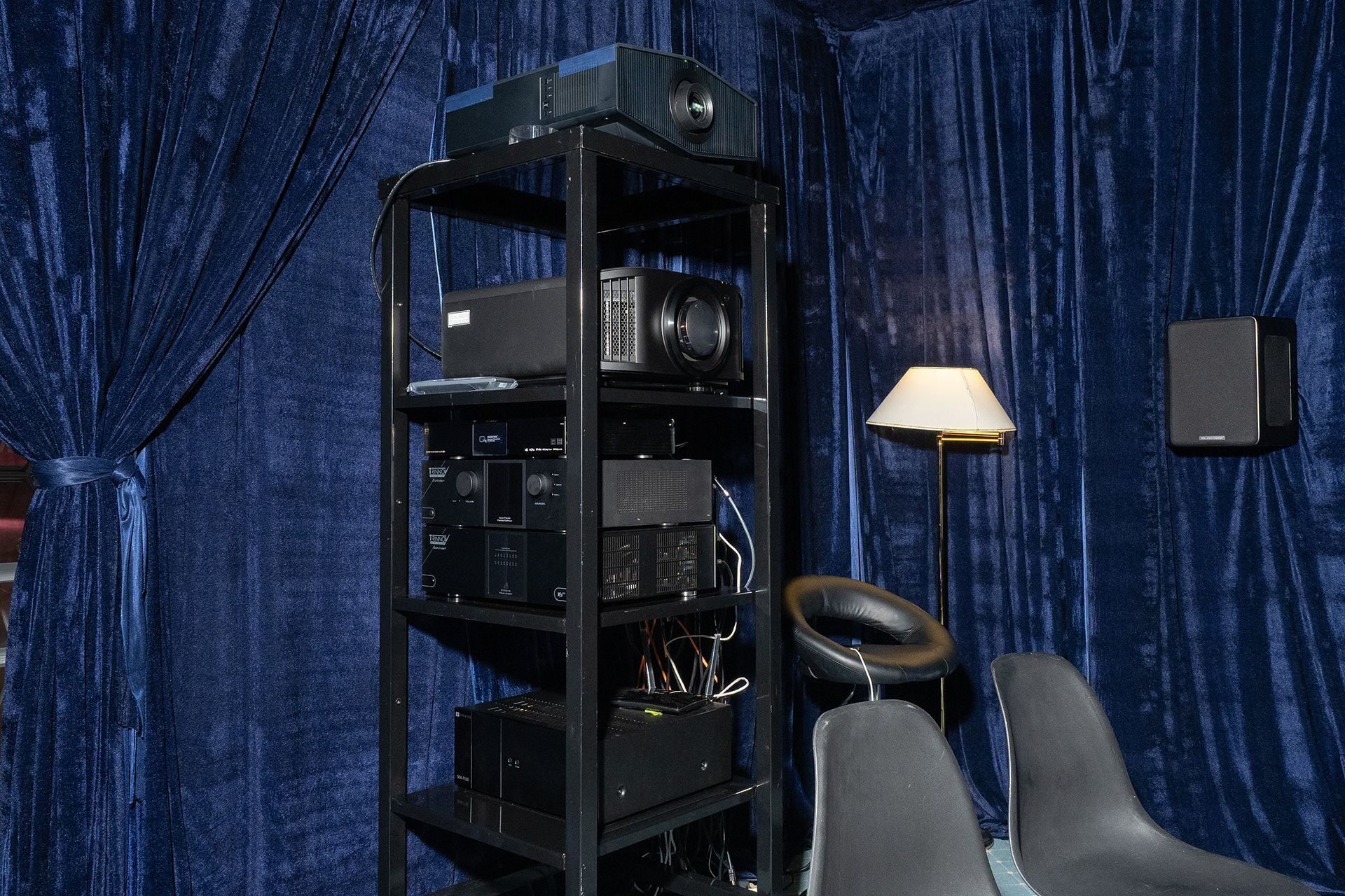 В комнату 712 можно было бы поместить еще больше колонок. Но больше уже не помещалось. Хотя, конечно, можно было бы, но уже некуда, если честно. Источник не показной щедрости — компания MMS с компонентами линейки Premiera Pro: они взяли и сделали домашний кинотеатр от и до, от стойки с многоканальными компонентами до акустического массива, от которого можно легко испытать импульс первобытного страха. Система с максимальной плотностью звука на квадратный метр. Ну и «комнату в комнате» оцените: идеальное решение для тех, кто не готов начинать проект с акустически инертного фундамента.