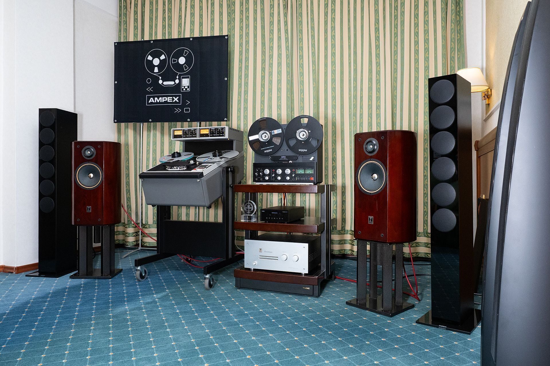 Ленточное царство — в комнате 610. Здесь, в сущности, уникальная подборка: новый серийно выпускающийся магнитофон Revox и полностью восстановленный магнитофон Ampex. И ладно бы они сами по себе там стояли, но они находятся в системе с ламповым усилением и акустикой Kondo. И подборка отменных лент, в том числе и очень редких. То есть все по отдельности редкое или очень редкое, а вместе же, наверное, никто в мире никогда не состыковывал эти компоненты. Слушать однозначно. Для расширения кругозора как минимум.