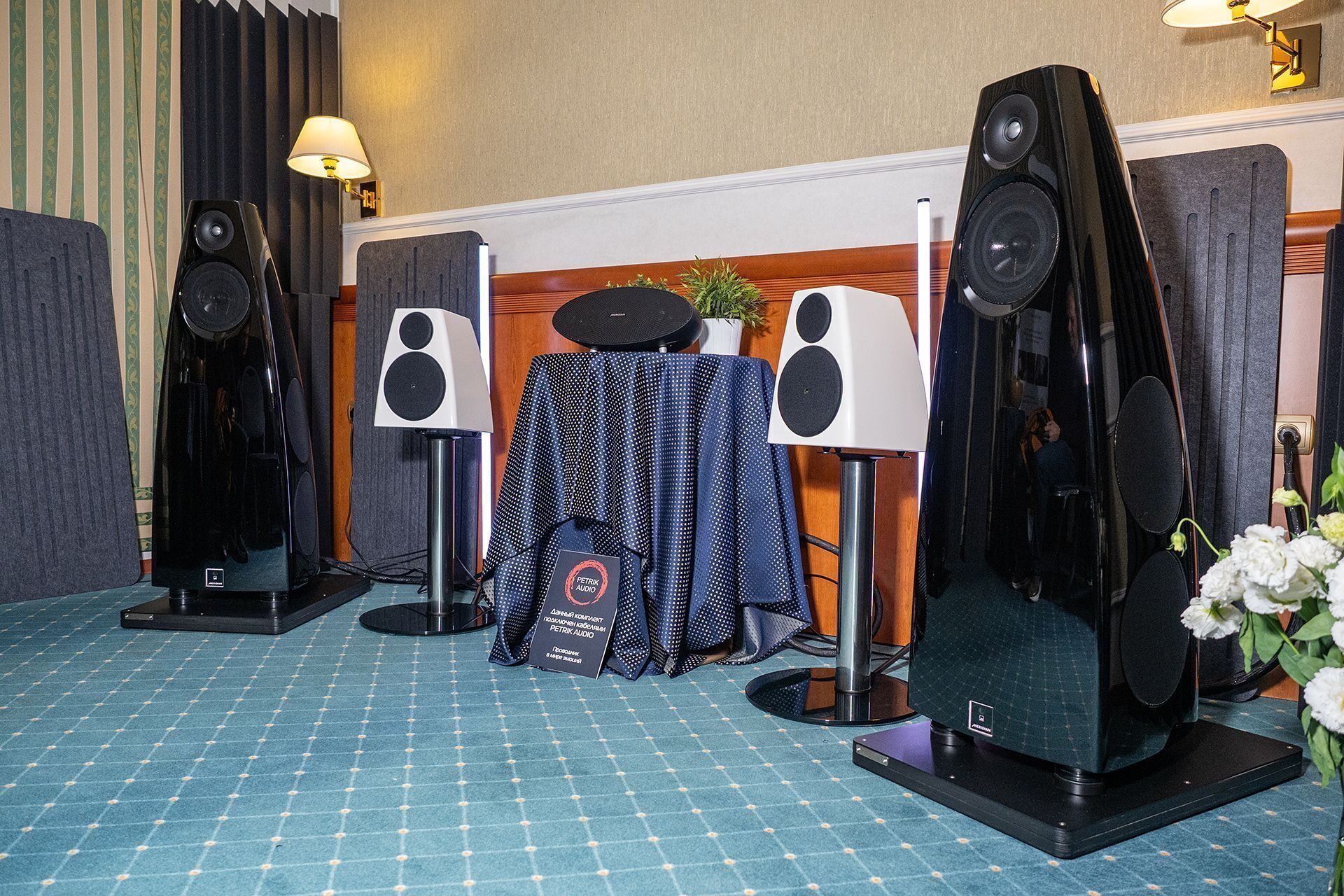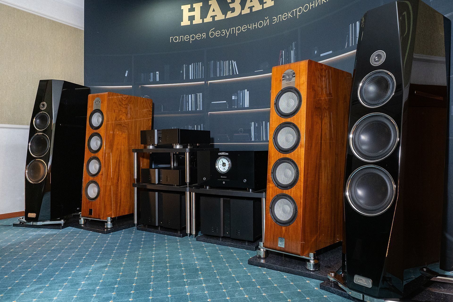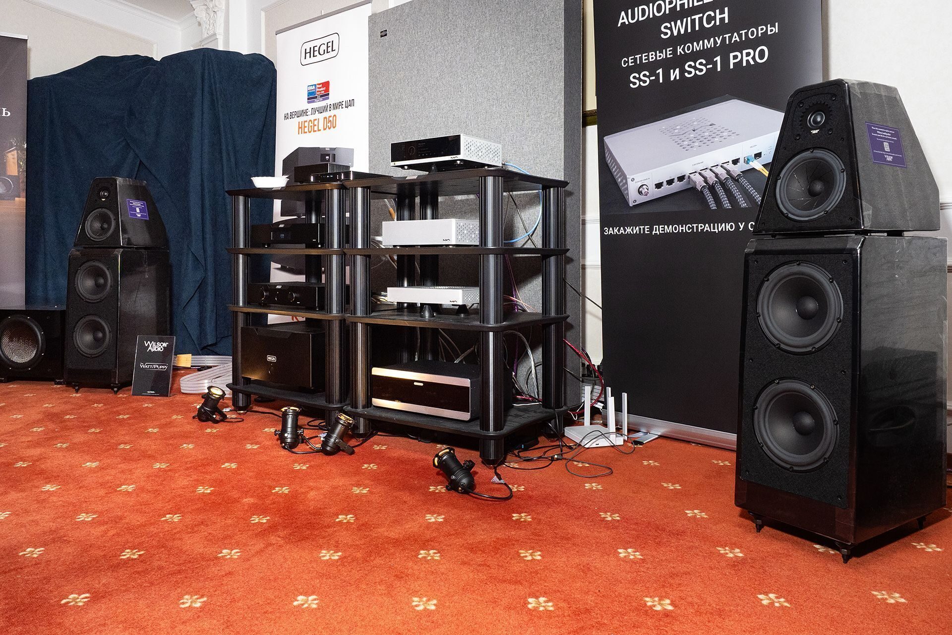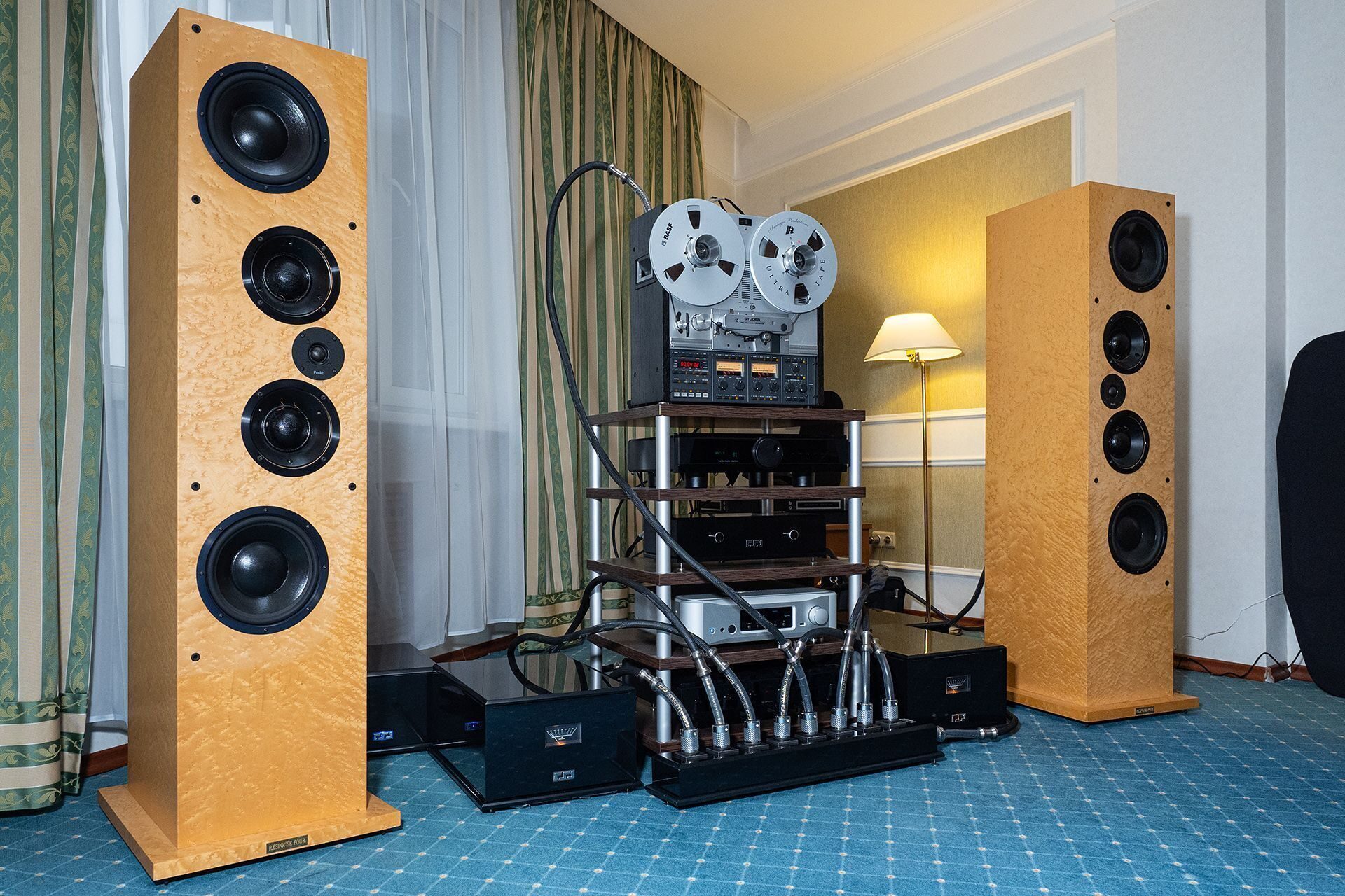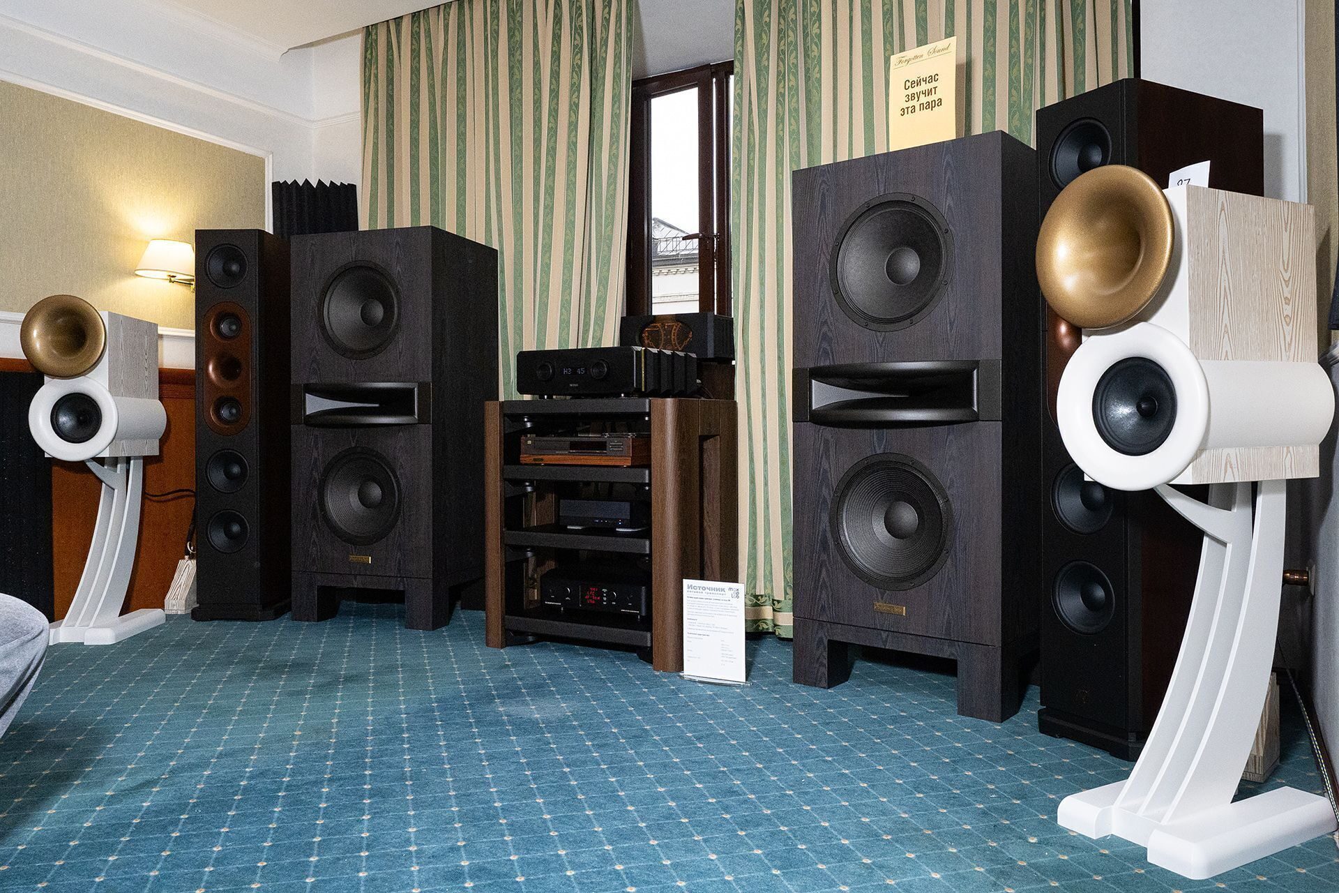 В комнате 503, организованной Галереей «Назаров», все достаточно грандиозно — сияющие лаком Marten либо внушительные Tidal Audio играют вместе с электроникой Vitus Audio. Играют приятно: звук упругий, глубокий, с приятными послезвучиями струнных, с высокой детальностью, но вот Tidal в таком помещении развернуться явно сложнее, чем Marten.