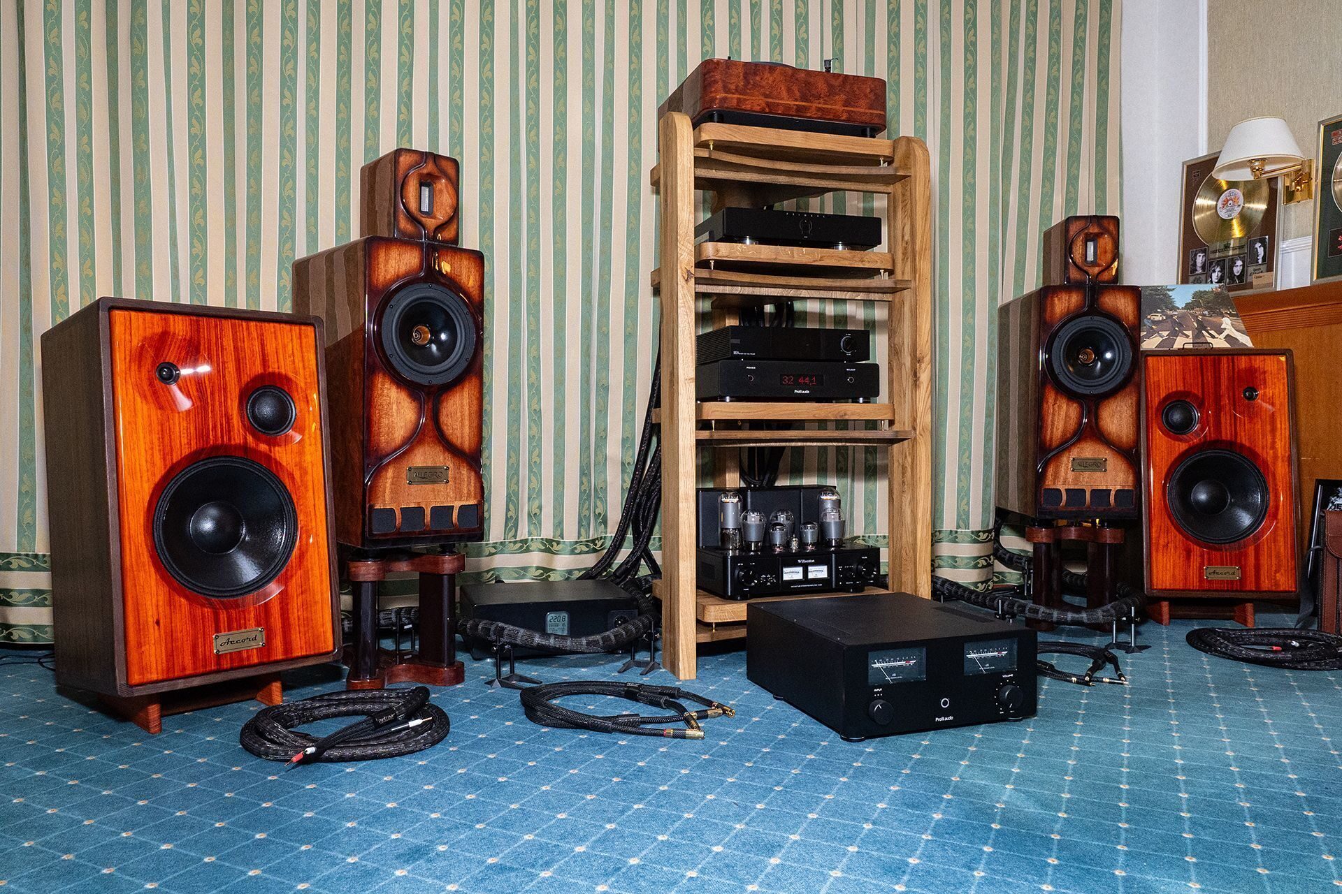 Столбики, стоящие по краям, очень уютные что в плане звука, что в плане отделки, да и в своей внешности стоимости никак не выдают. Играют душевно, с хорошей скоростью. А вот Jade 10th уже имеют совсем другой характер, и два ламповых моноблока ему подходят очень даже точно.