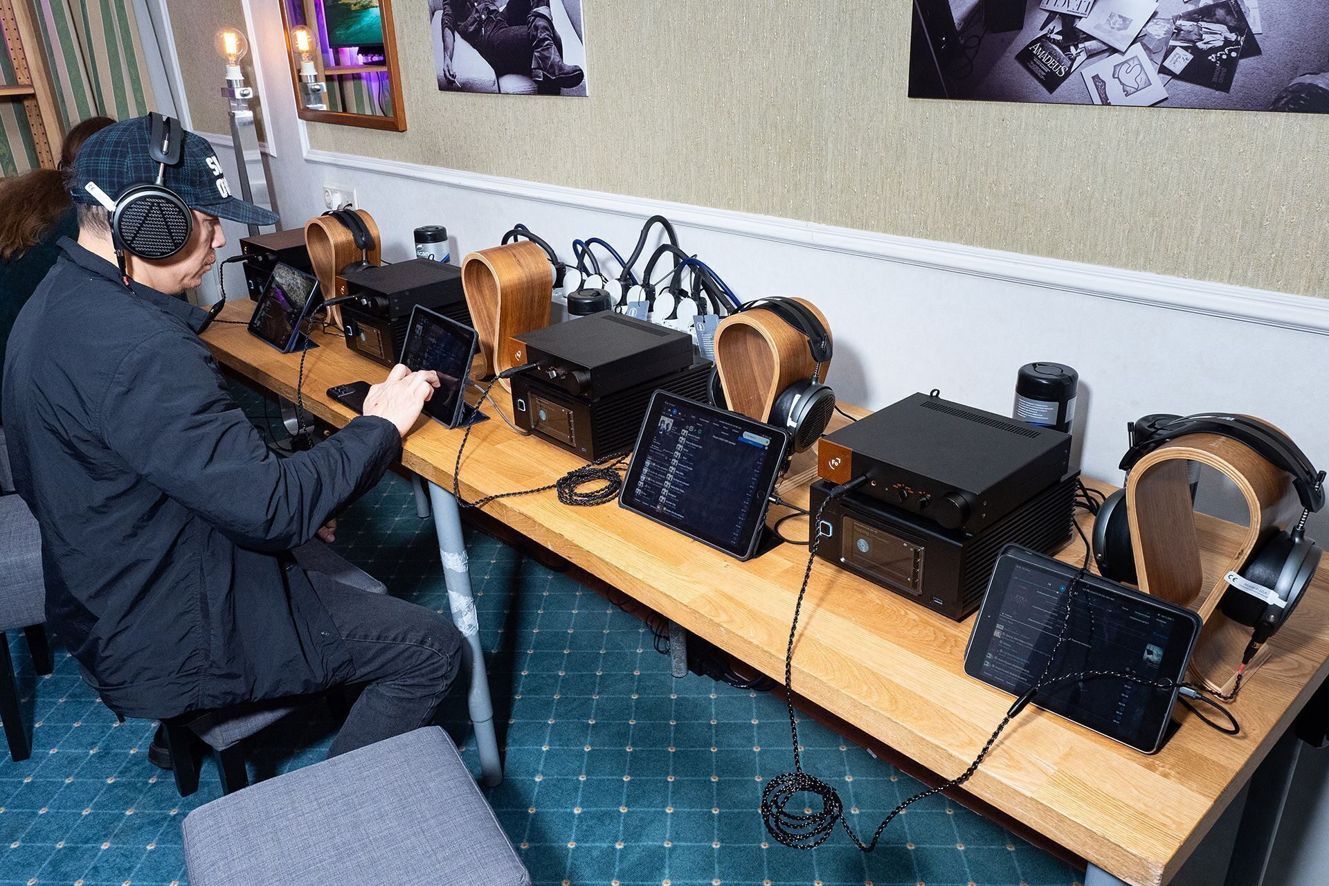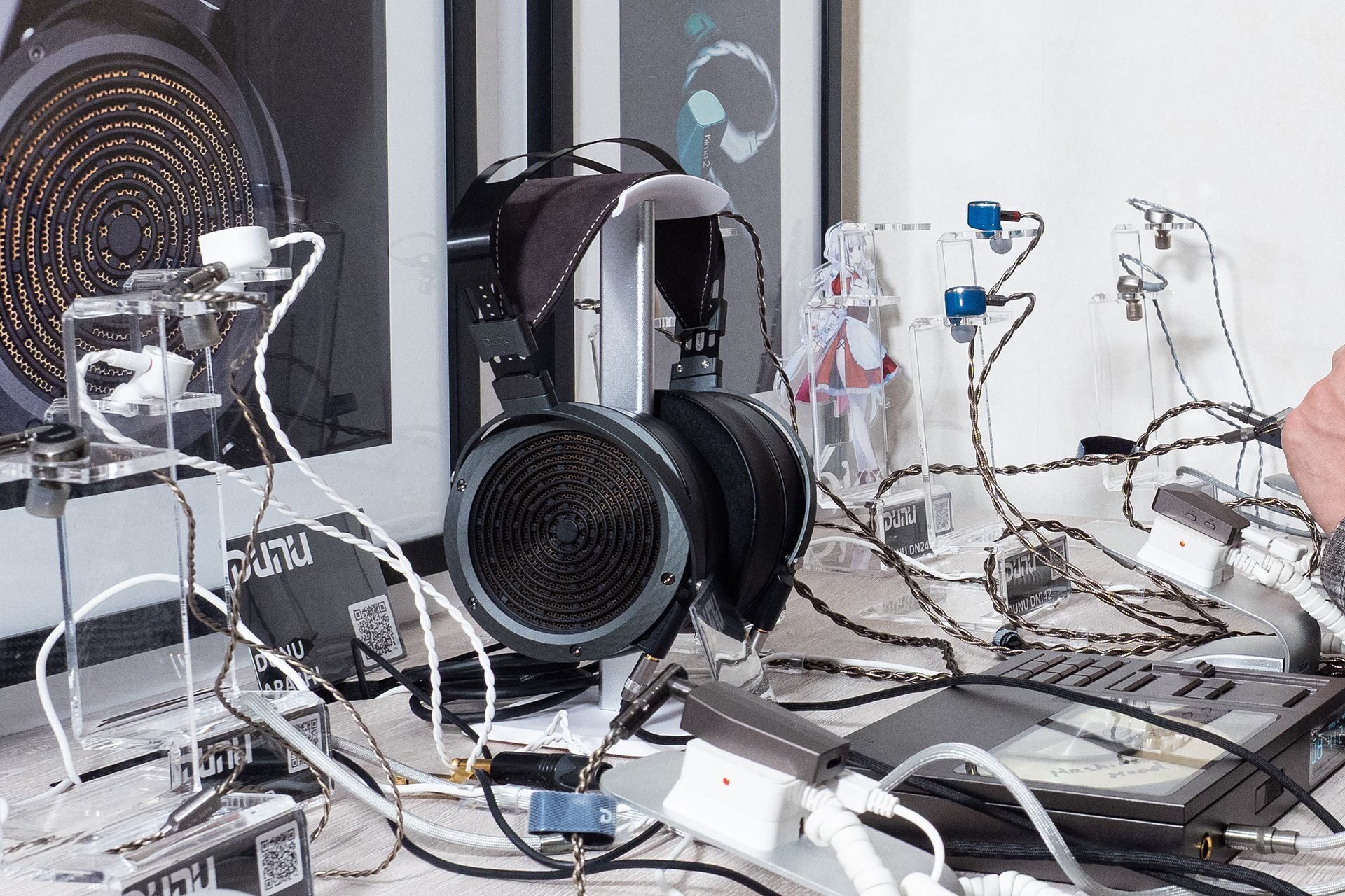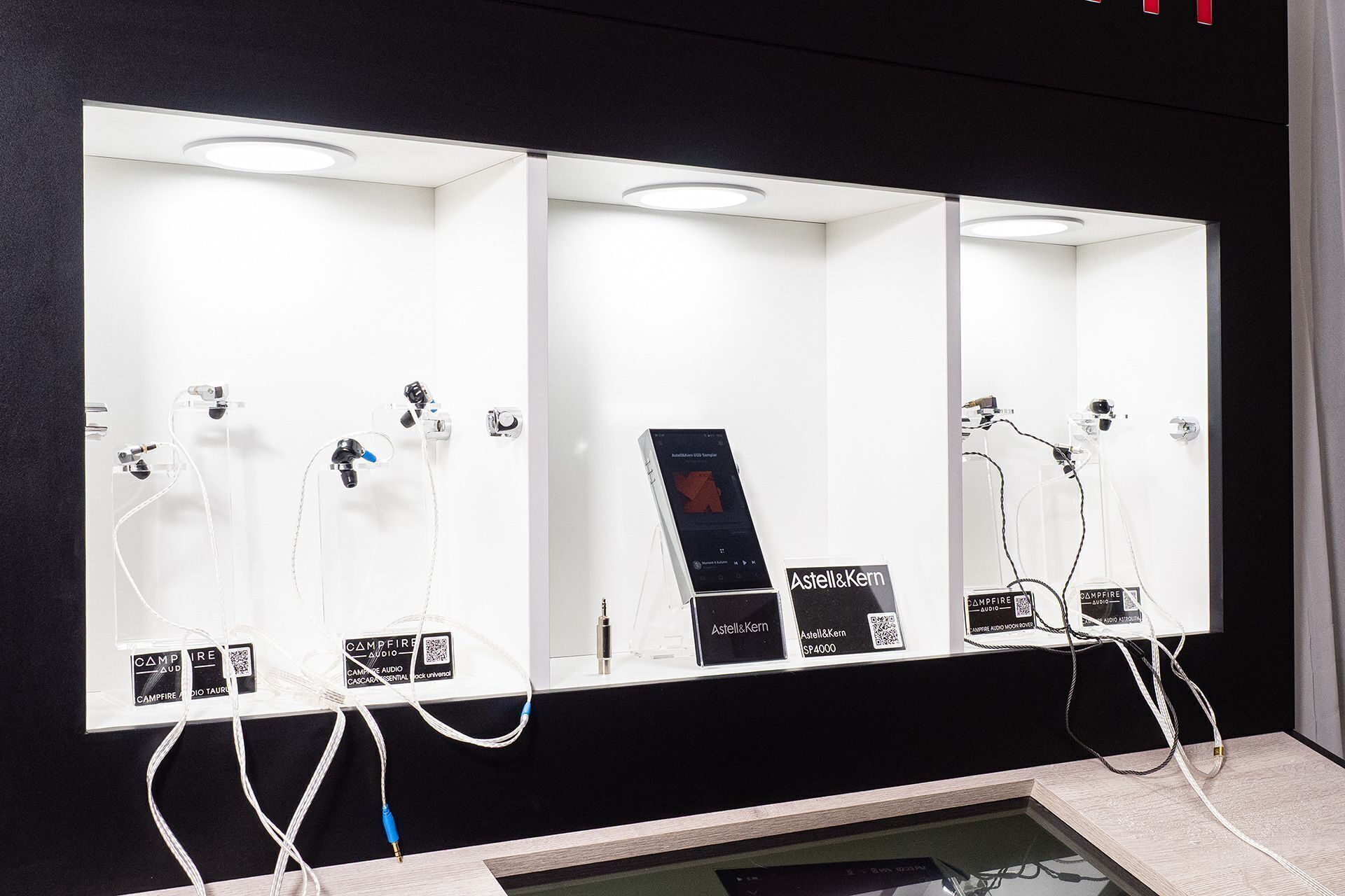 В соседней комнате 614 продолжают исследовать главенство портатива и компактных десктопных систем. Почти что контрабандный топовый плеер Astell&Kern SP4000 можно не только потрогать, но и послушать вместе с любыми представленными наушниками от Dunu, Moondrop и Campfire Audio.