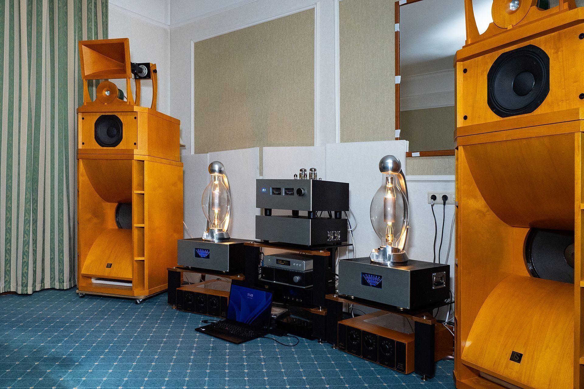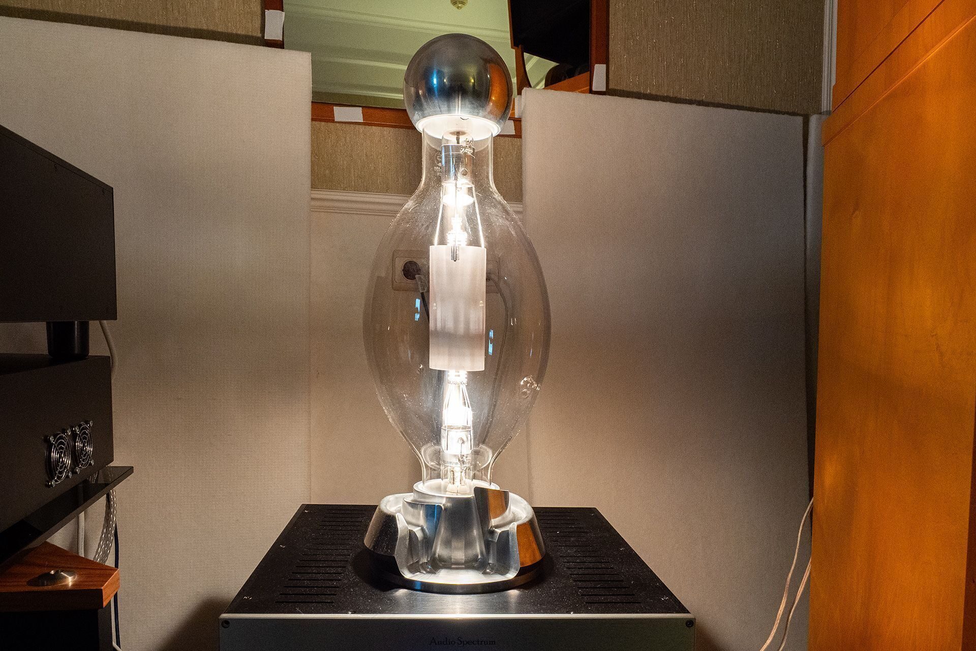 В комнате 516, где разместились Torridus, стоят российская рупорная акустика, ранее на этой выставке не представленная, и внушительное ламповое усиление (пожалуй, самая «крупная» лампа на выставке — в прямом смысле).