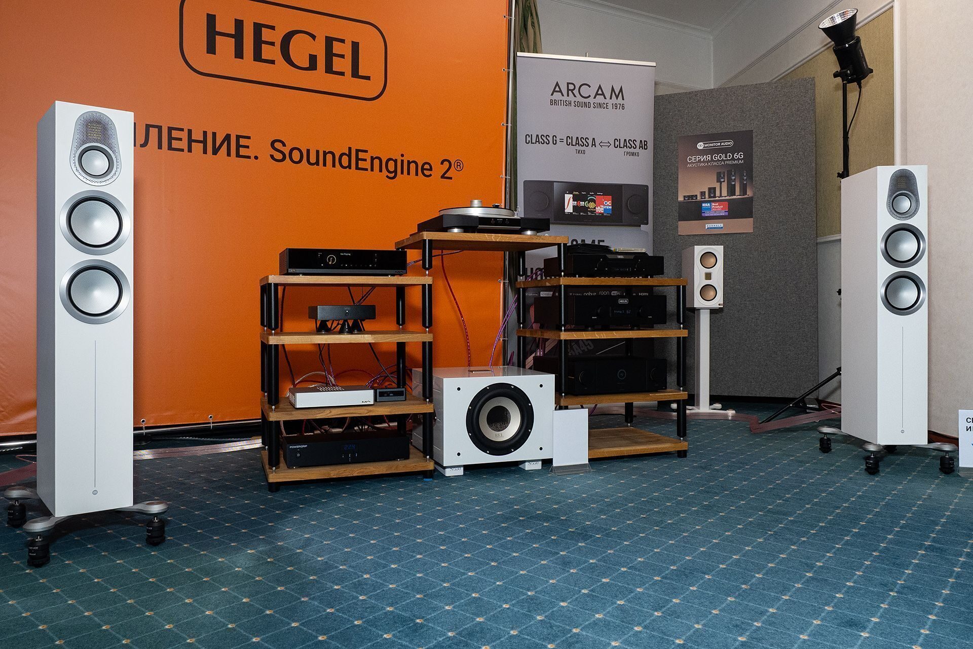В комнате 706 стоит система из акустики Monitor Audio и электроники Hegel с цифровым источником Matrix. Но вот что здесь интересно, так это новый сабвуфер REL, неожиданно сконструированный с усилением в классе AB, а не в D, как остальные модели. Предназначение саба — работа именно в музыкальных, а не кинотеатральных системах. И в эту музыкальную систему он интегрировался как родной.