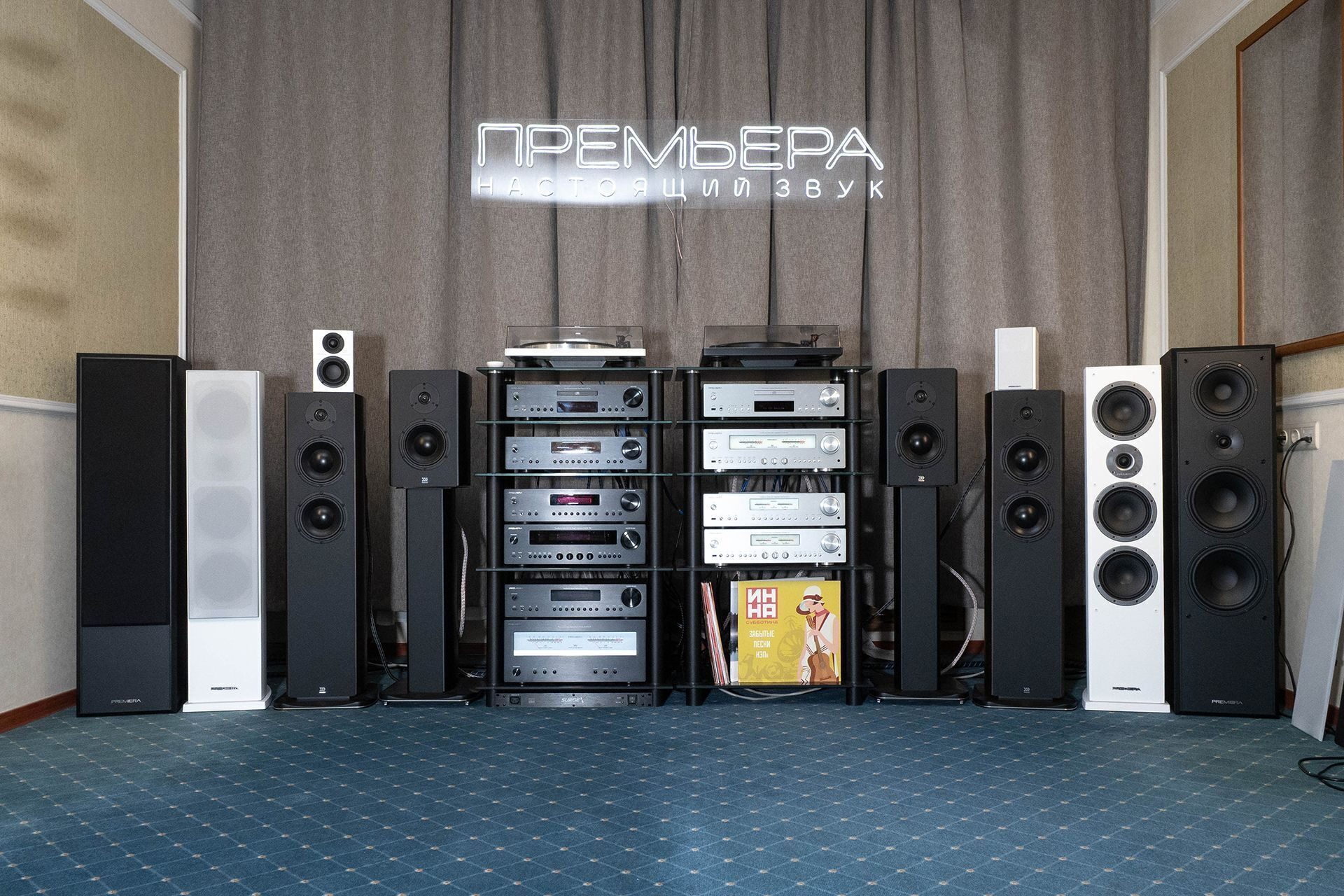 Во-первых, это красиво: когда взгляд встречают плотные ряды домашней, в одном стиле хайфайной аппаратуры - невольно радуешься как дитя, что есть все-таки, смогли, достигли и наполнили стойку до отказа. Это компания MMS чествовала трехлетний юбилей бренда Premiera в комнате 713.