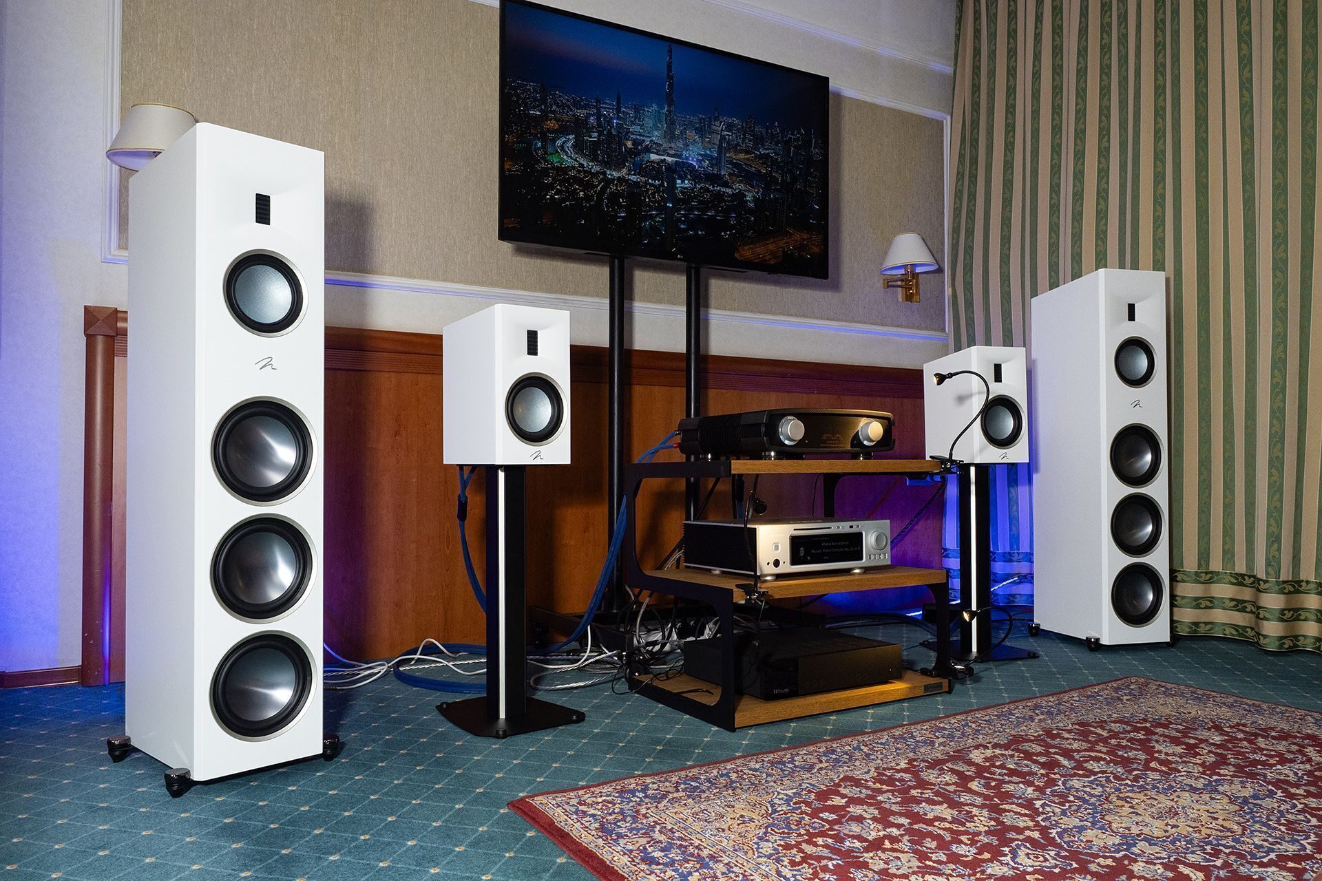 В комнате 602 с электроникой NAD из недорогих линеек играют несколько моделей акустики Indiana line. Кстати, тоже весьма бюджетные решения. Вроде бы просто некрупные напольники, несложные, но звук масштабный и эмоциональный — больше ожидаемого, если можно так сказать. Так что получить много звука за не так много денег все-таки можно.