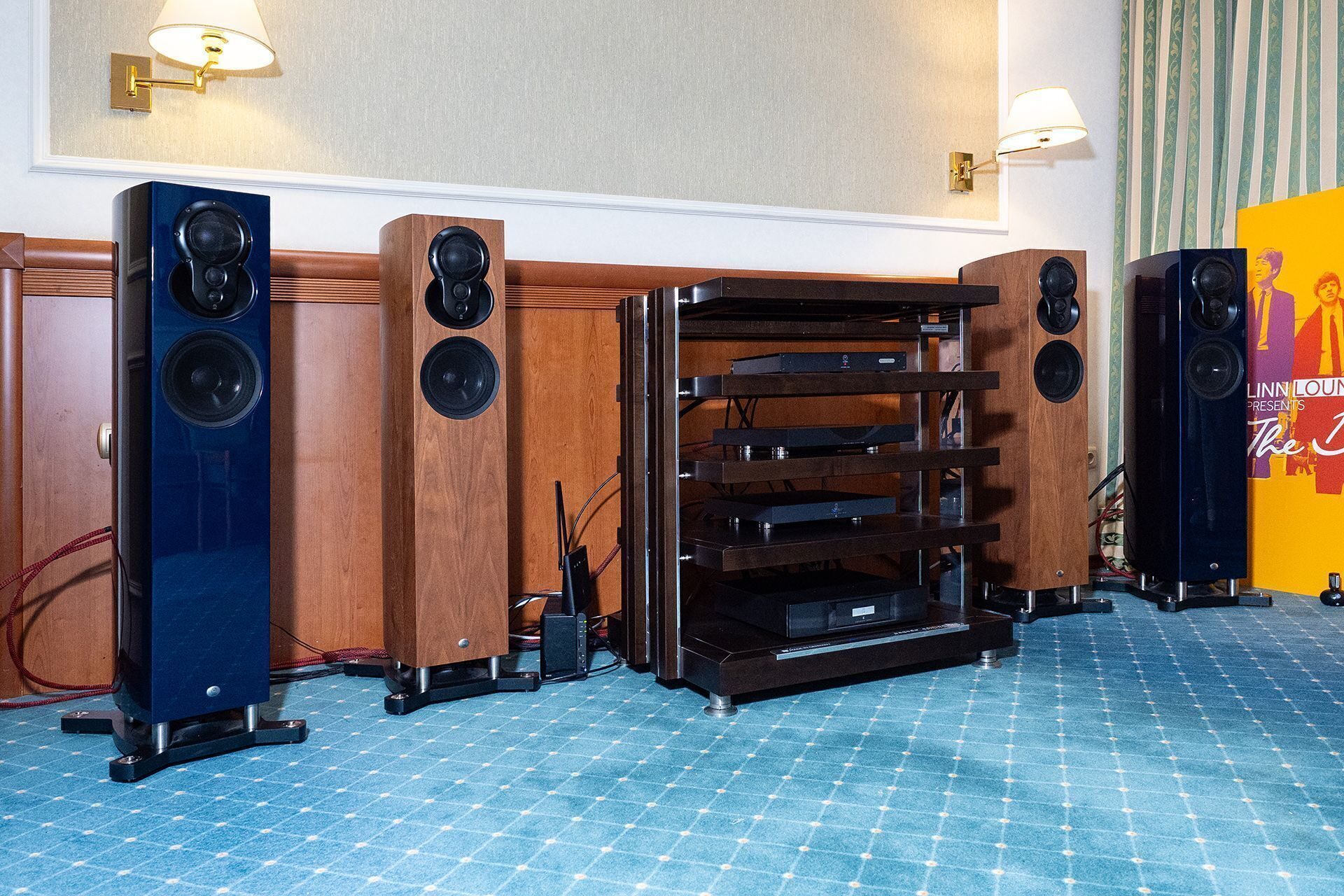 Неподалеку, в комнате 518, показана совсем другая идея — монобрендовая система из компонентов Linn. Активная изобарическая акустика, свои цифровые источники. Можно просто послушать как концепцию и оценить — это интересно, поскольку Linn уже давным-давно предпочла перейти в цифровой мир. Знаменитых проигрывателей винила от Linn нет, но в такой концепции, может быть, даже и хорошо, что обошлись только цифрой.