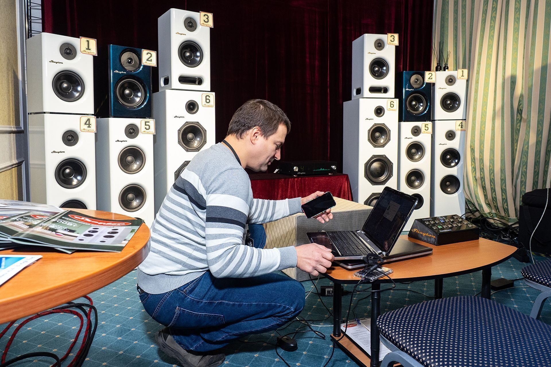 Наше начало выставки вы уже видели: мелкие шаги меж коробок, робкие взгляды на лица тружеников звука, которые до утра выводили АЧХ завидной ровности в своих комнатах для прослушивания. Позже — чудачества и веселье, потому что АЧХ в отеле — это как портвейн в портфеле: пригодится, но и без него в буфете есть чем заняться.