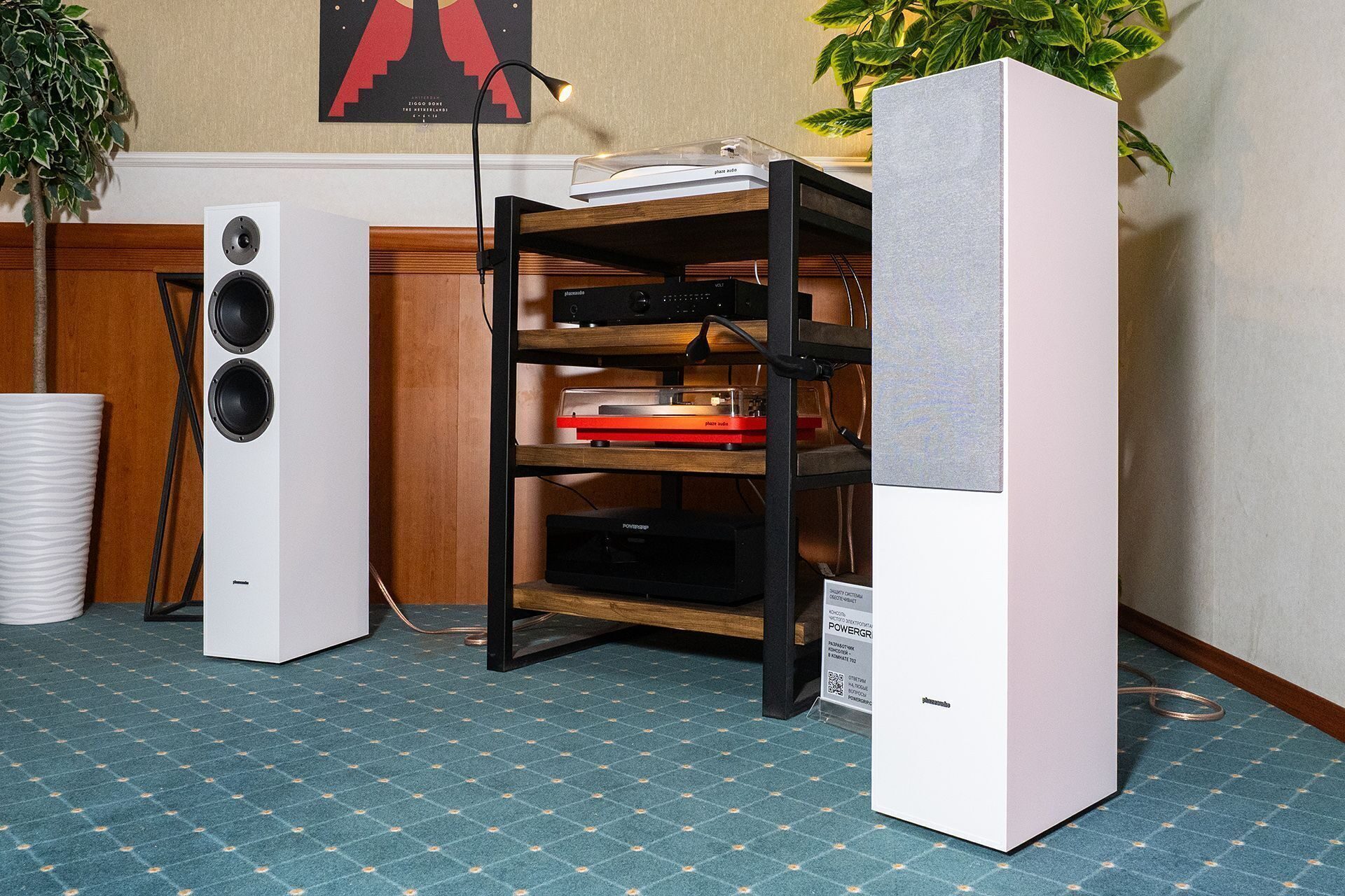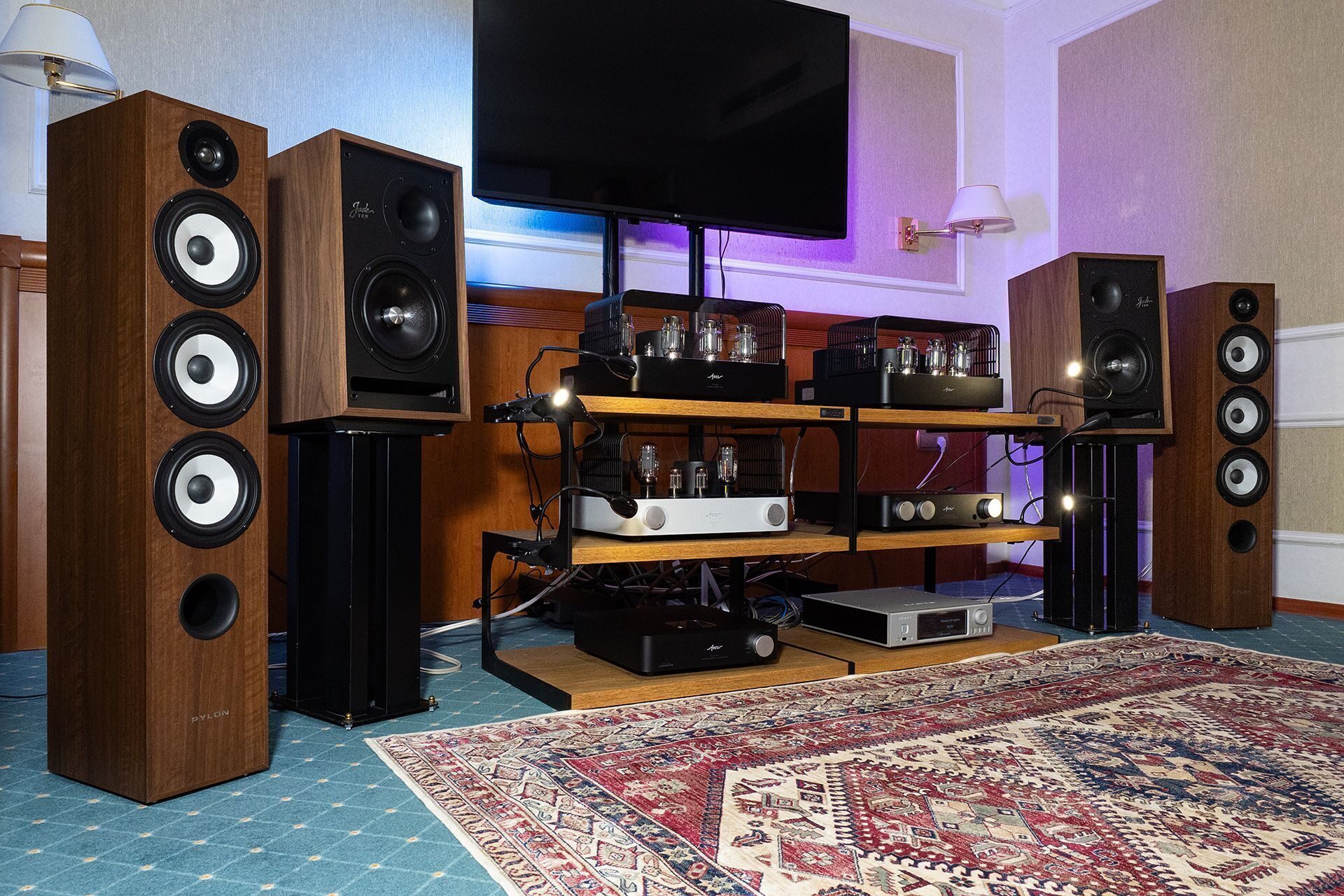 В 703 комнату стоит зайти для того, чтобы оценить искусство приготовления лампового усиления в руках Fezz Audio в паре с акустикой Pylon Audio. Стоят две модели — бюджетные (по классификации бренда, конечно) столбики и более увесистые ретро-стоечники.