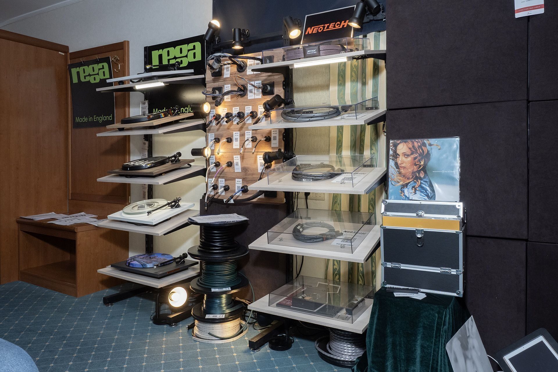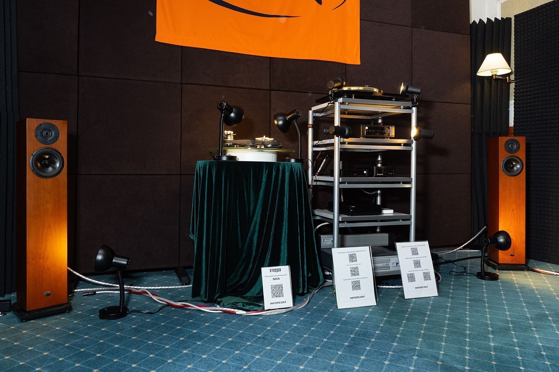 В комнате 501 разместился Inforcom и традиционно представил железо Rega и Bryston, акустику Apertura, а отдельно — большой стенд кабелей Neotech. Именно кабелям посвящена приличная часть экспозиции. Бренд на нашем рынке так-то знакомый, но вот прямо лицом, в доступной для изучения форме его еще не показывали. Но и не только показывают, в общем-то: все кабельные обвязки у всего, что играет — Neotech.