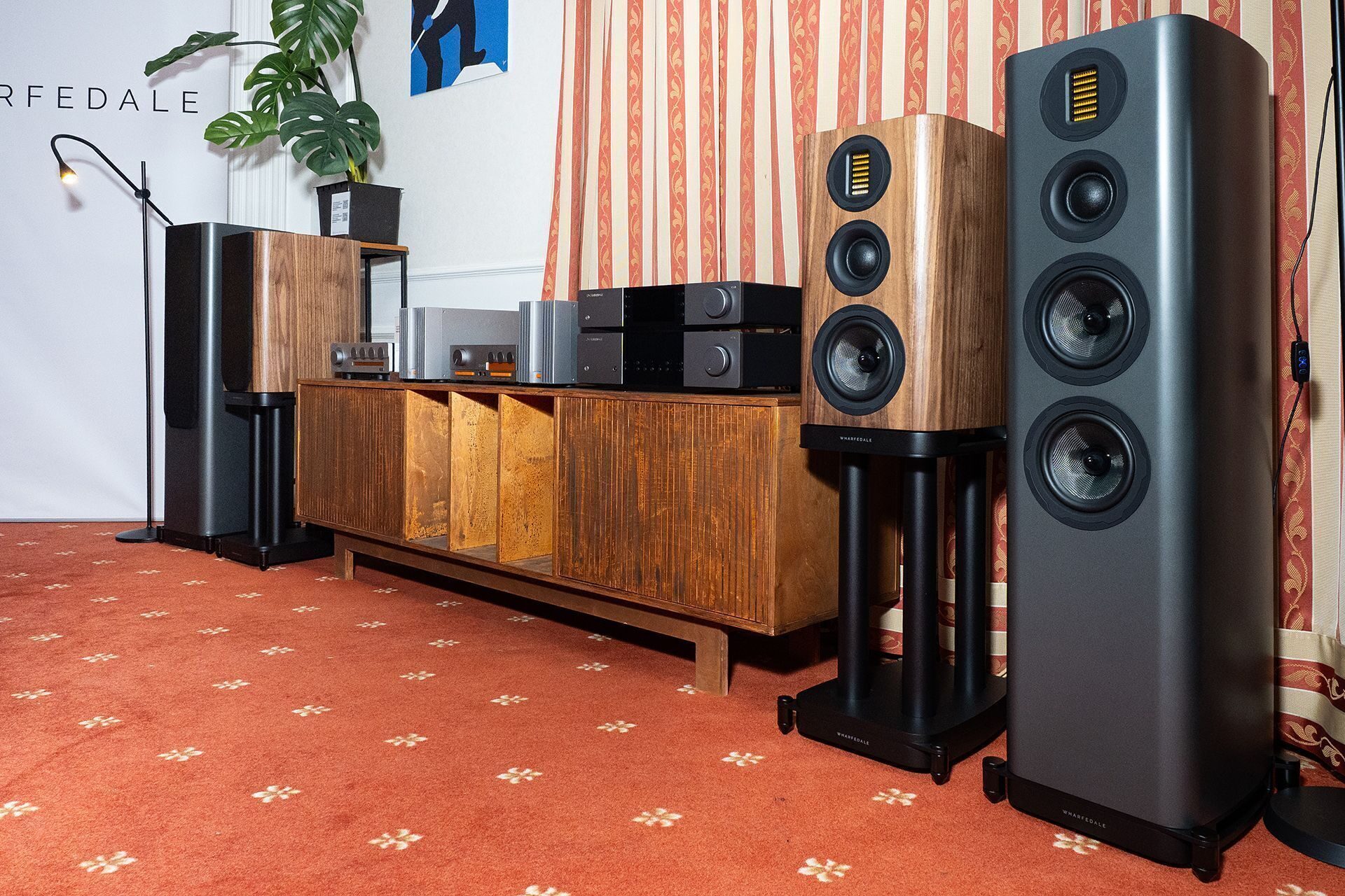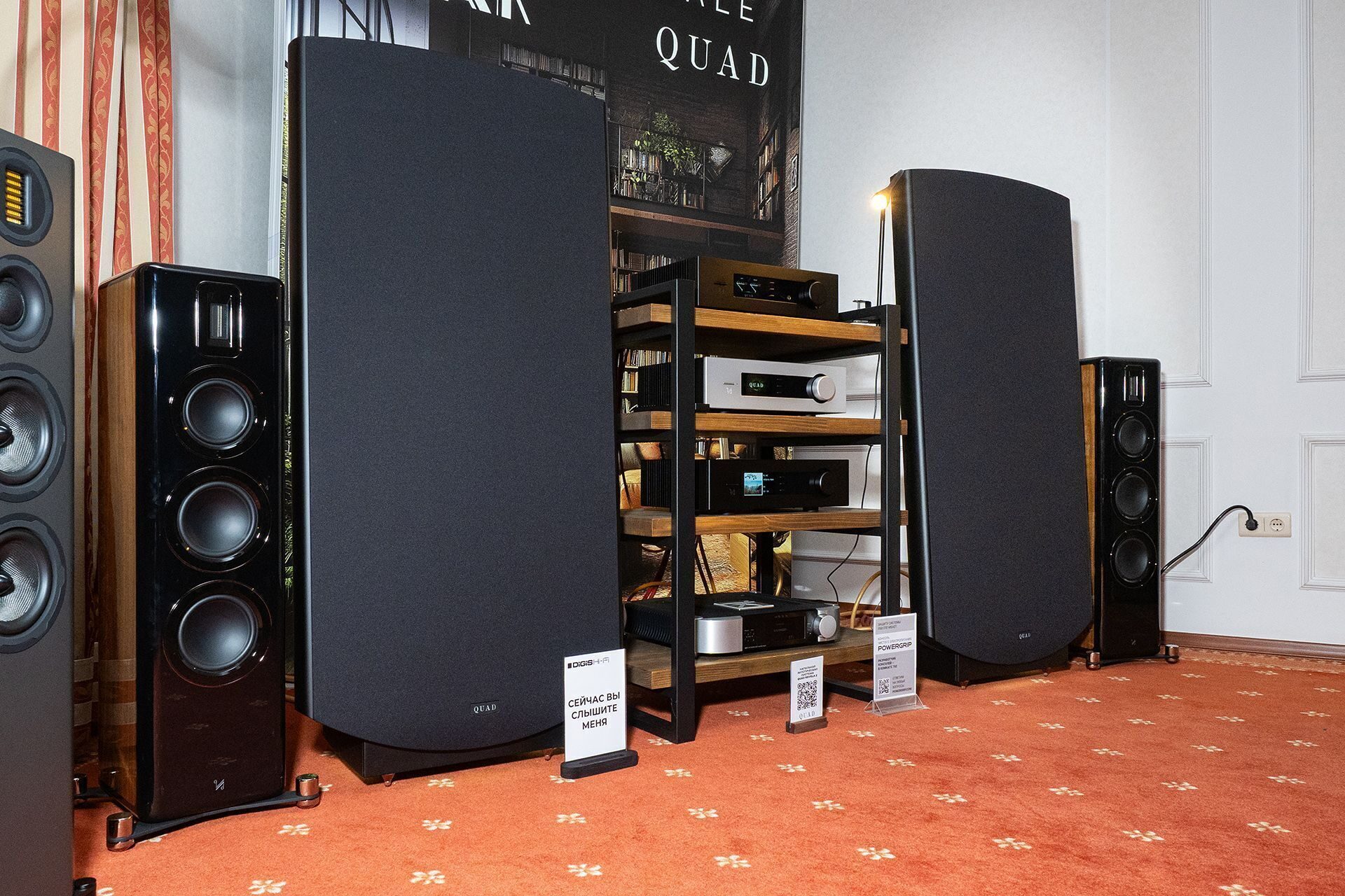 А рядышком притаились напольники Wharfedale из линейки EVO: не просто стали больше, но и с кроссовером там подшаманили, и с размерами динамиков, и еще по мелочам. Но главное — матовый графитовый цвет им невероятно идет. Особенно рядом с ретро-брутальным комплектом от Quad или парой девайсов от Cambridge Audioю