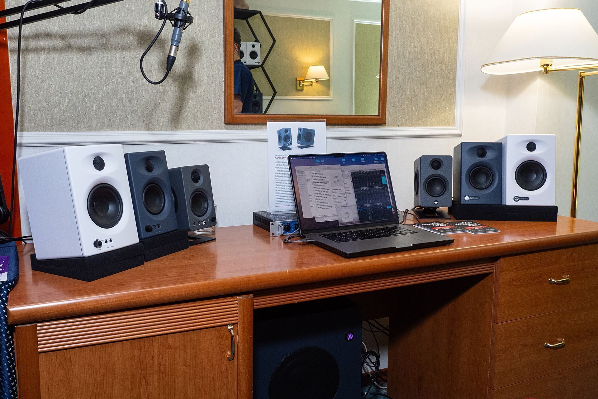 Компания Aurasonic в комнате 507 показывает новые активные мониторы Pulse 5 с ленточными твитерами. В этой реализации — с DSP и пополосным усилением в классе D, плюс с множеством вариантов подключения. Остальные модели тоже можно послушать, в том числе и полностью аналоговую модель активных мониторов. Модели побольше, поменьше, модели в связке с активным сабвуфером и без. Хорошие впечатления и от реализации, и от звука, да и от цен.