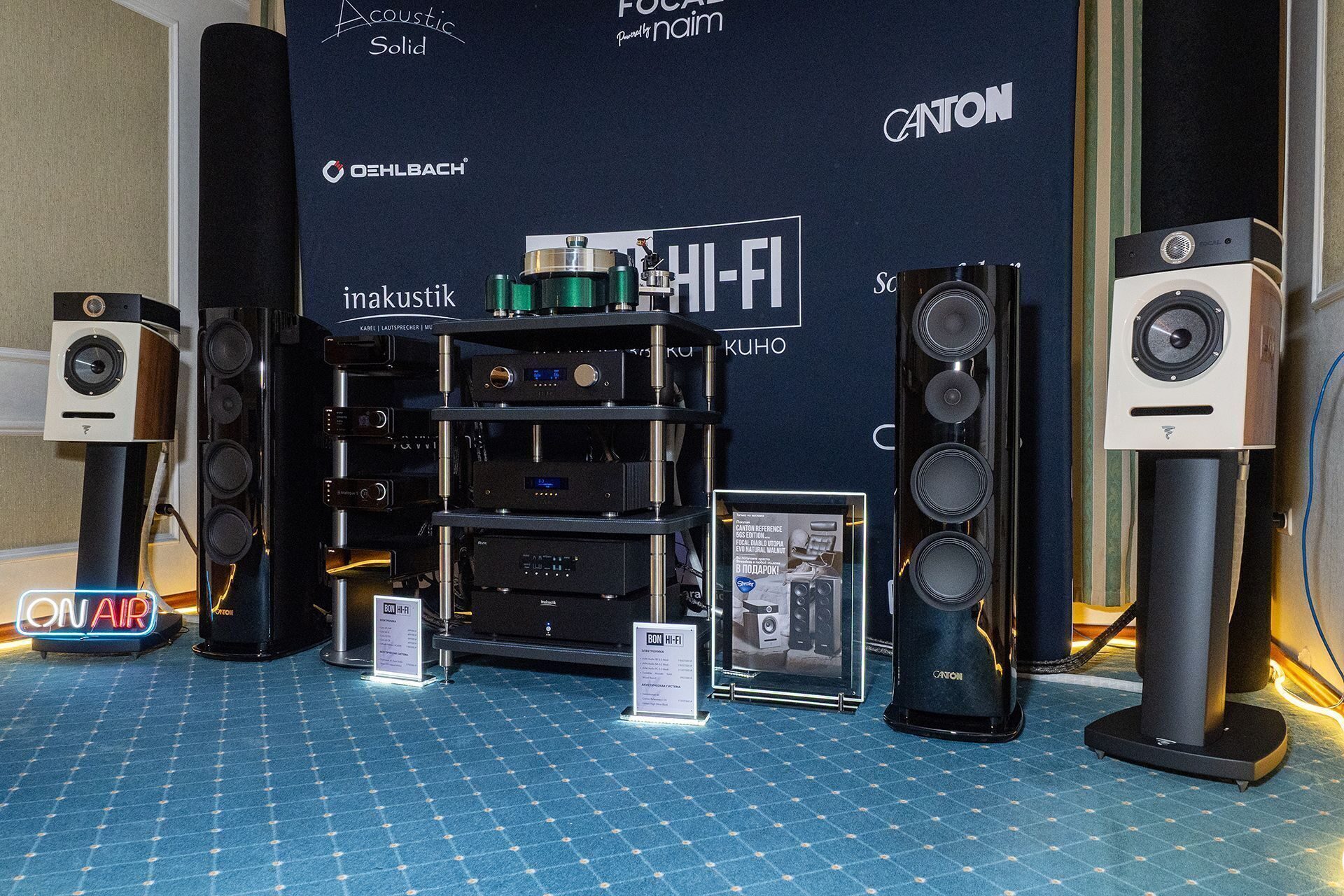 За новинками стоит зайти в комнату 513 — там есть отличная стойка, полная Cyrus. Ей дело не ограничивается: по краям стоят обновленные напольники Canton из линейки Reference, играющие мягенько, обнимающе, но при этом без каши, с нужной степенью детальности, и старшие полочники Focal, сочетающие аккуратность со звонкостю. Электронику меняют с глянцевых узеньких Cyrus на сияющие чернотой и хромом AVM, и тут впечатление уже слегка меняется.